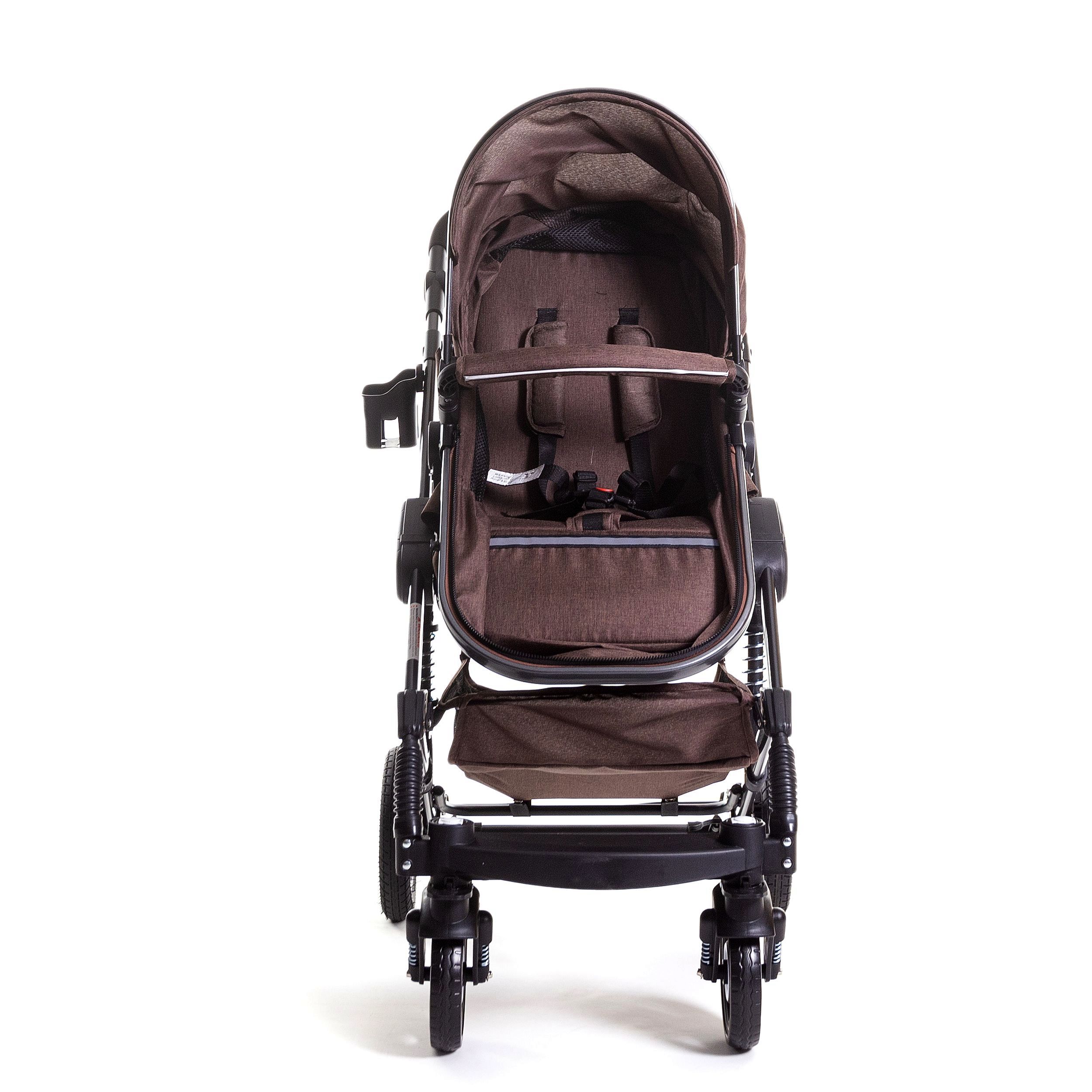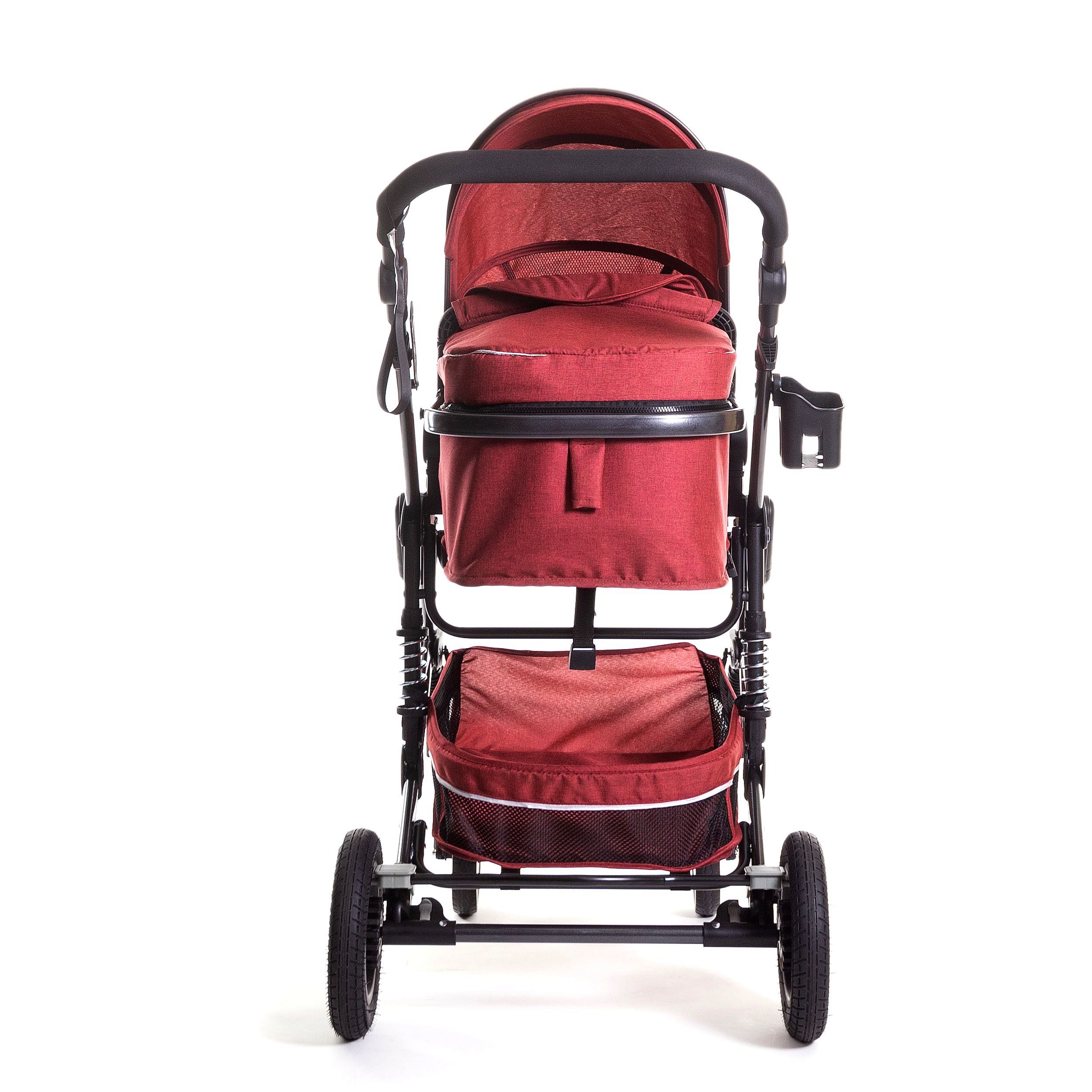 В комплекте: коляска, встроенная детская люлька, корзина для багажа, мягкая подкладка для сиденья, подстаканник, ремешок на родительскую ручку, чехол для ног.