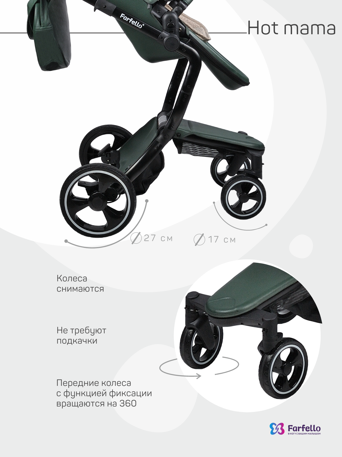 Диаметр передних колес - 17см