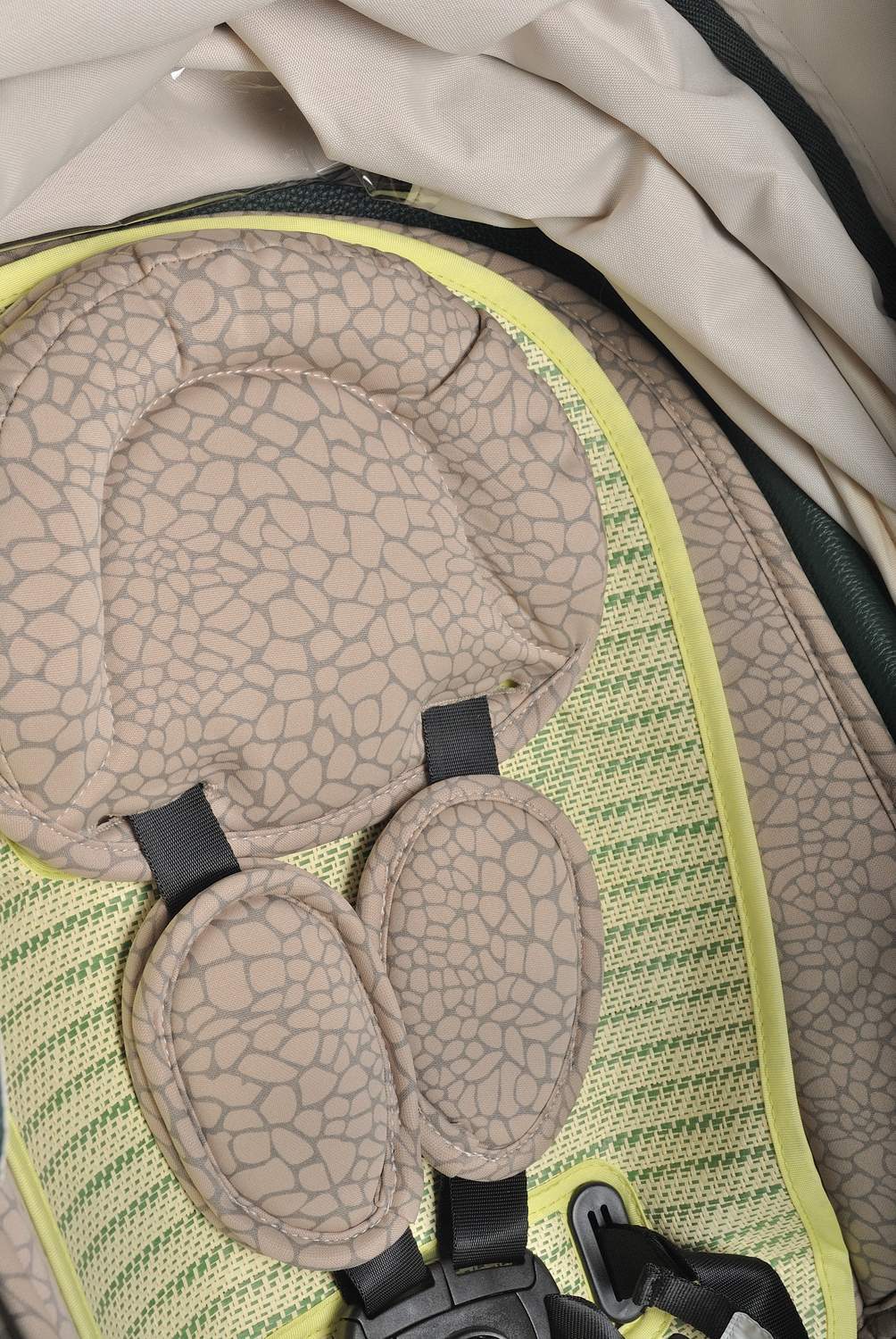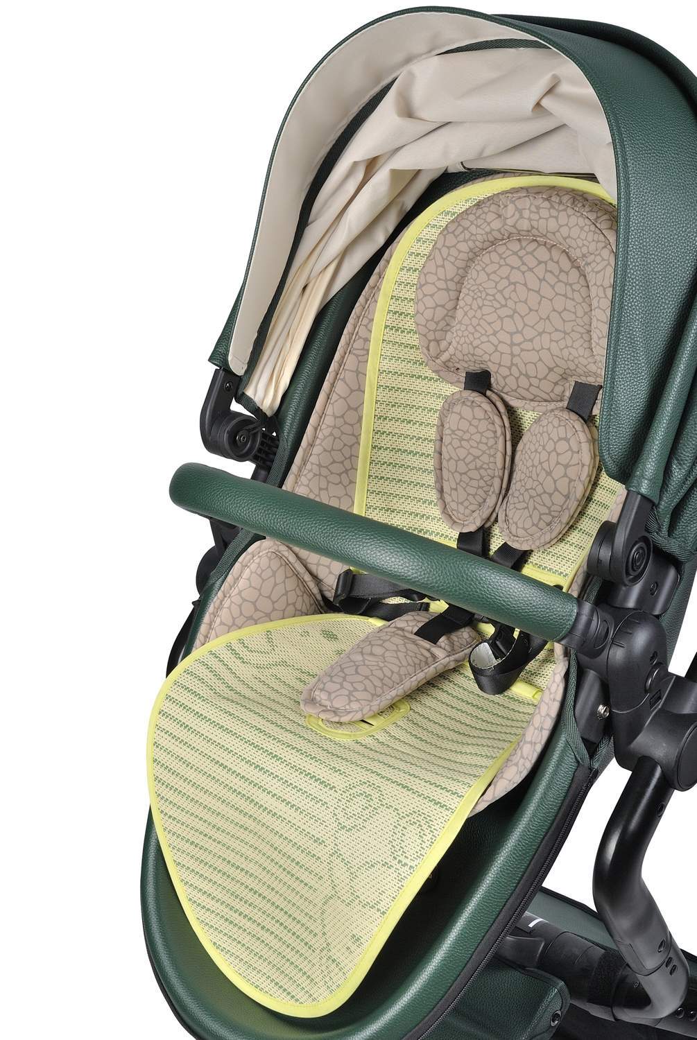 Сидение в прогулочном блоке сделано по типу "гамака" и имеет 3 положения по наклону 100,145,180 градусов. Наклоны осуществляются с кнопки.
