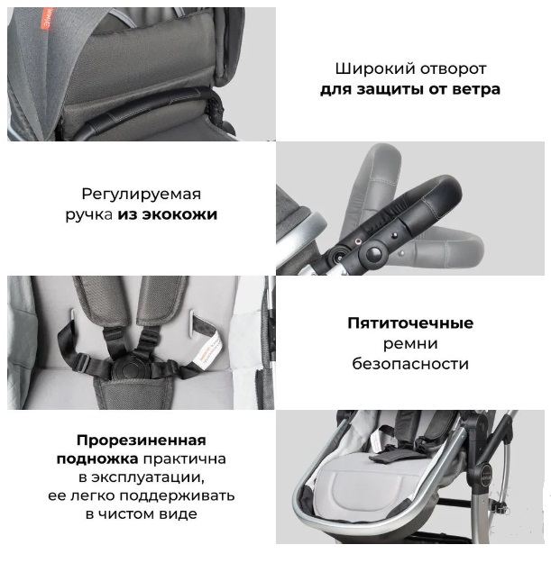 Обновленная модель - это: увеличенный полог для ножек, который можно крепить к капюшону, таким образом вашему ребенку будет не холодно в любое время года. Родительская ручка и бампер выполнены из стильной экокожи, дополненной прострочкой, новая вместительная модель сумки, использована современная фурнитура, которая прослужит еще дольше!