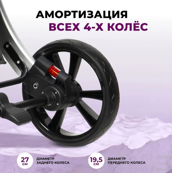 Размер колес: задние 27 см, передние с фиксацией 19.5 см