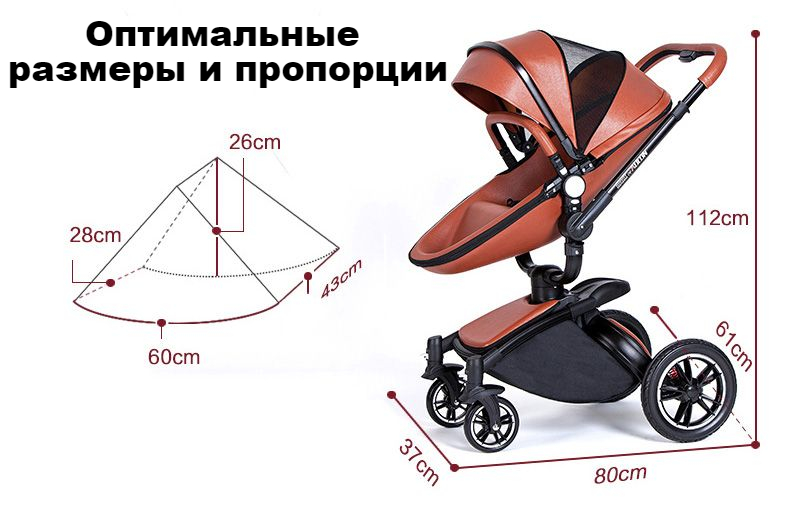 - Габаритные размеры коляски (ДхШхВ), см: 80 х 37 х 112.
