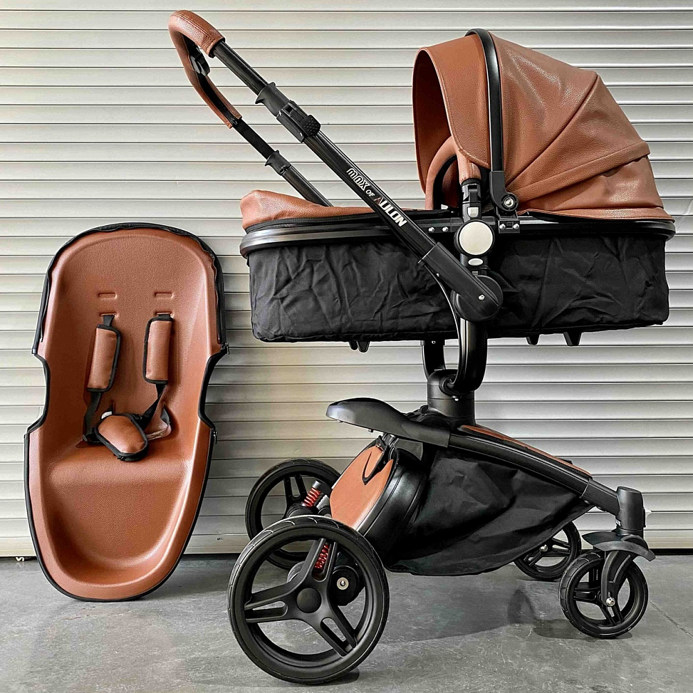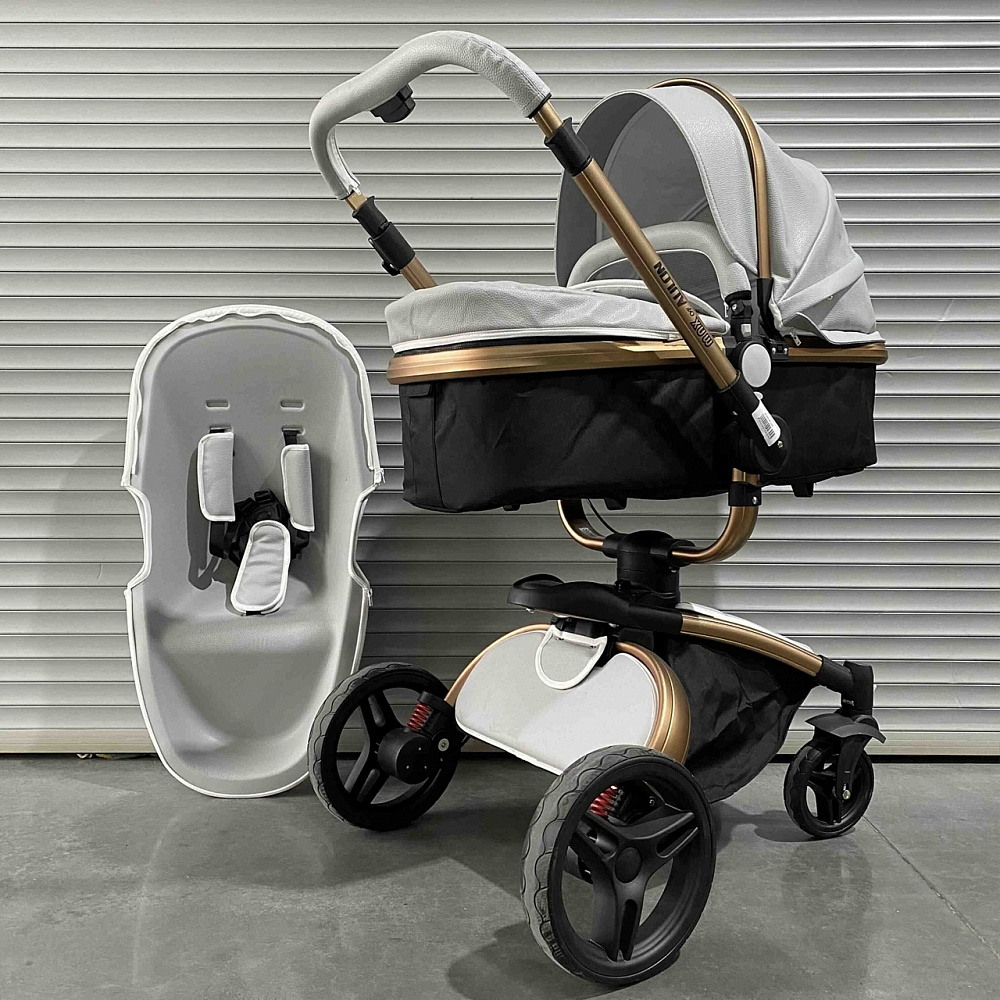 Коляска -трансформер Aulon AB-906 2 в 1 (Аулон) - красивая коляска трансформер для ребенка с рождения до 3-4 лет. Коляска отличается очень красивой округлой формой прогулочного блока, который смотрится дорого и оригинально. У модели всего один блок, который в зависимости от возраста ребенка превращается либо в люльку, либо в прогулочный блок. При этом люлька будет с высокими бортами, пошита из ткани Оксфорд, жестким дном и мягким матрасиком. Люлька надежно укроет новорожденного от любой непогоды. Прогулочный блок выполнен из качественной эко кожи и имеет удобный наклон спинки для сна или бодрствования.