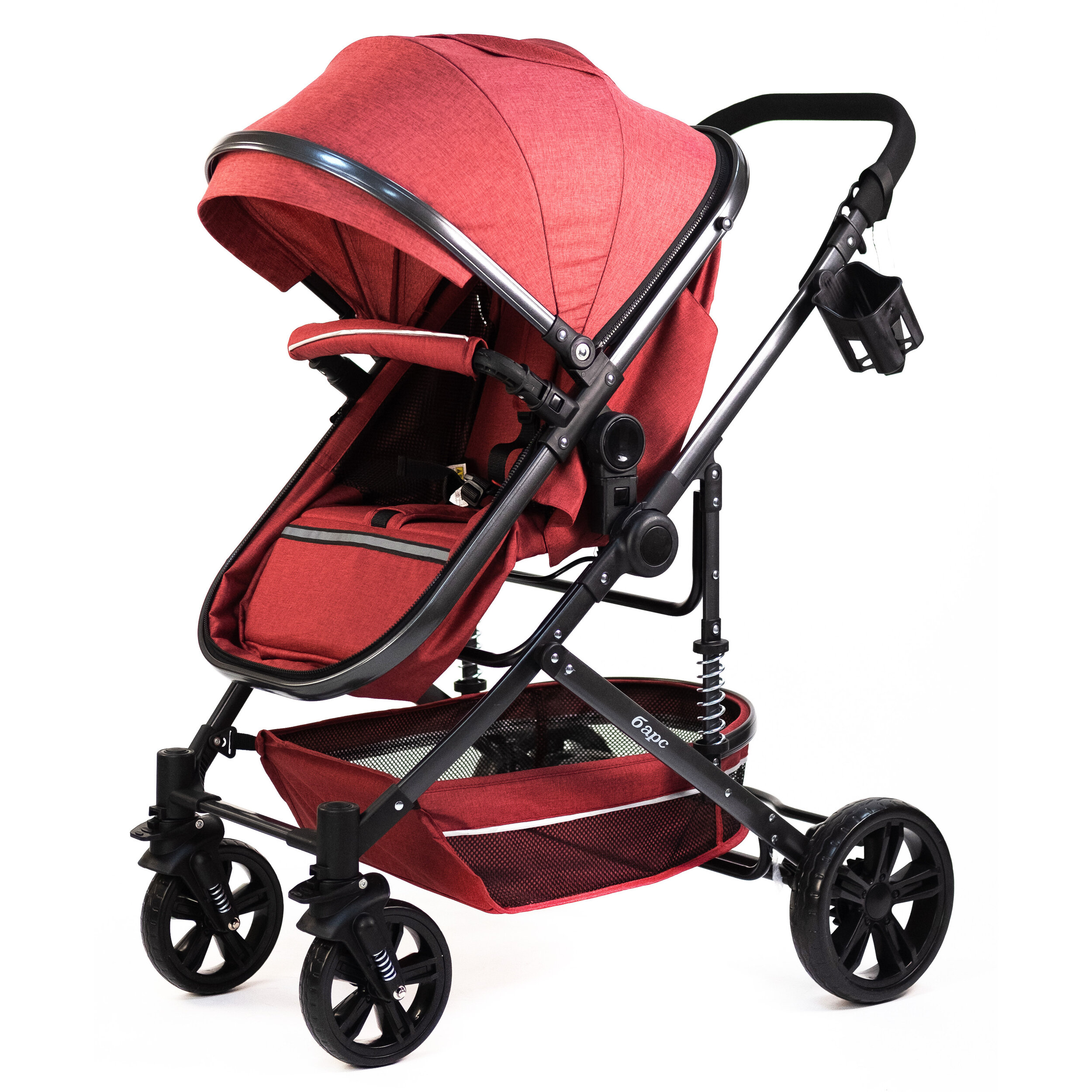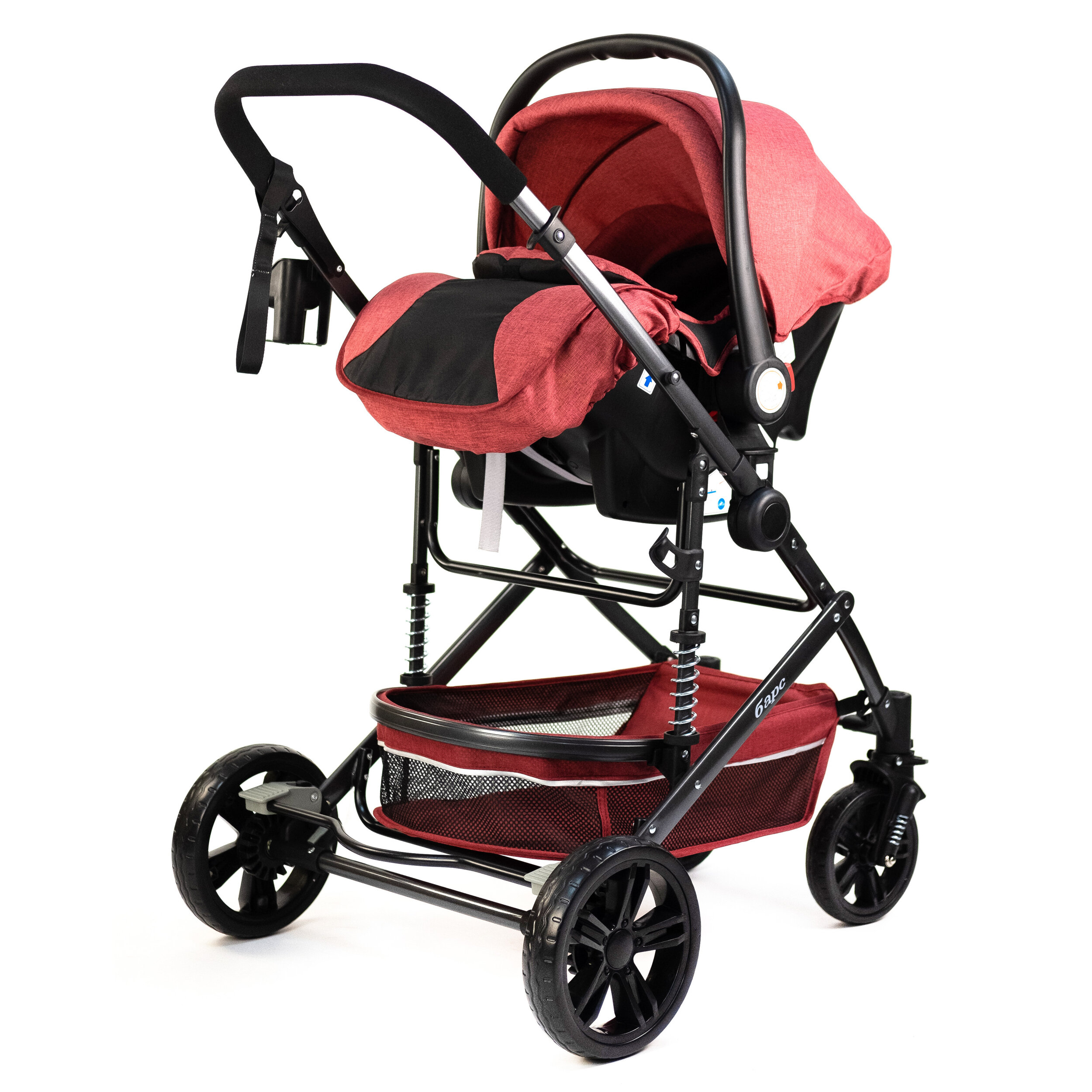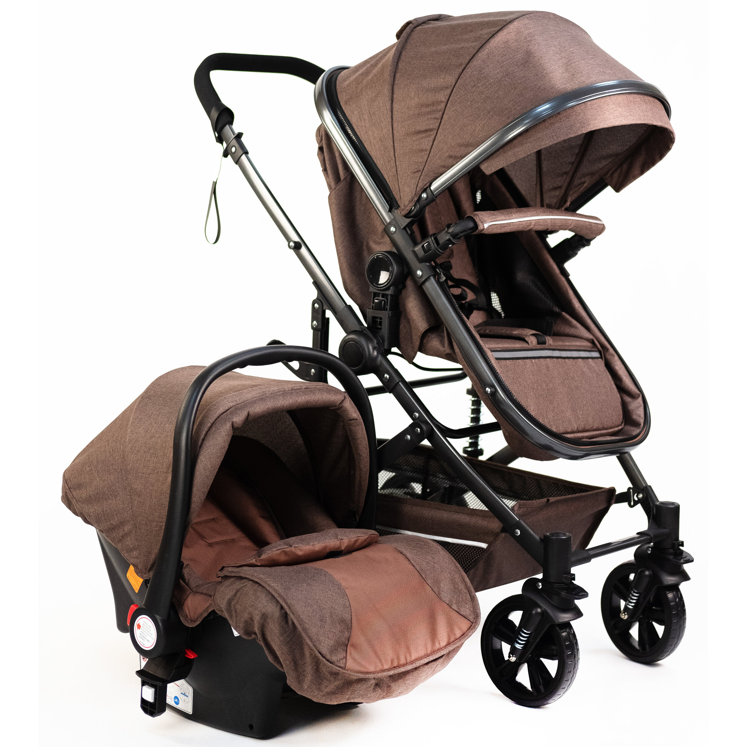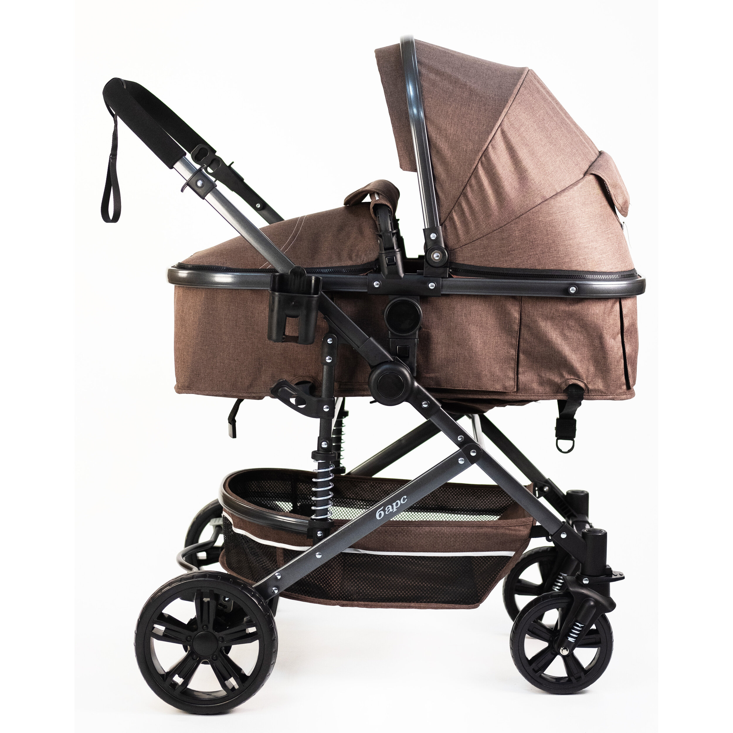 - В комплекте: Коляска-трансформер, встроенная детская люлька, автокресло, дополнительный вкладыш для автокресла, корзина для багажа, подстаканник, ремешок на родительскую ручку, чехол для ног, чехол для ног к автокреслу.
