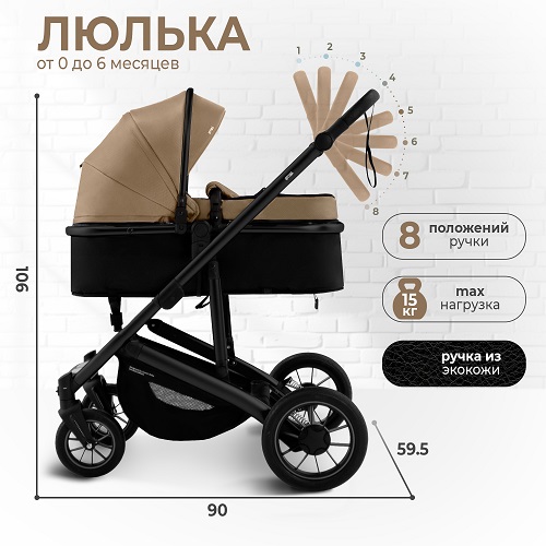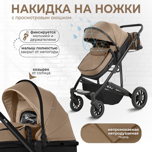 Большие проходимые колеса с амортизацией на всех колесах позволят смело прокладывать новые маршруты для прогулок, не переживая за комфорт ребенка.