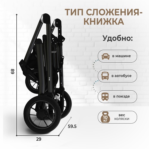 При поездках на машине коляска удобно и компактно складывается, не доставляя хлопот родителям.