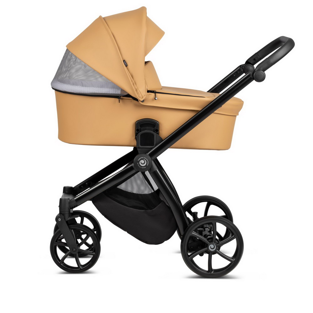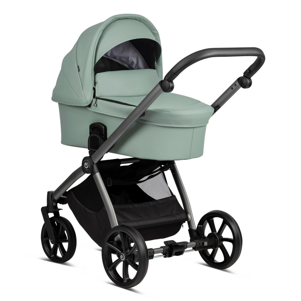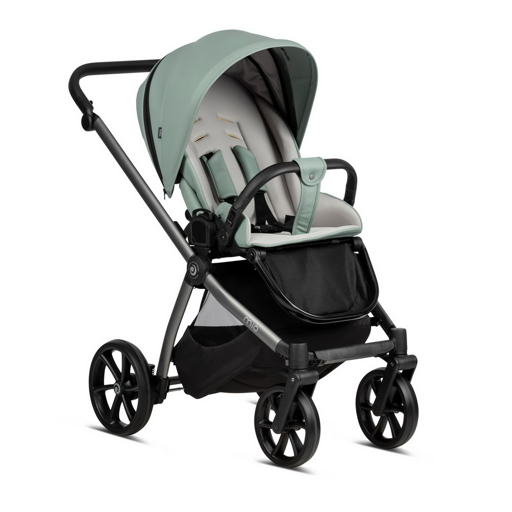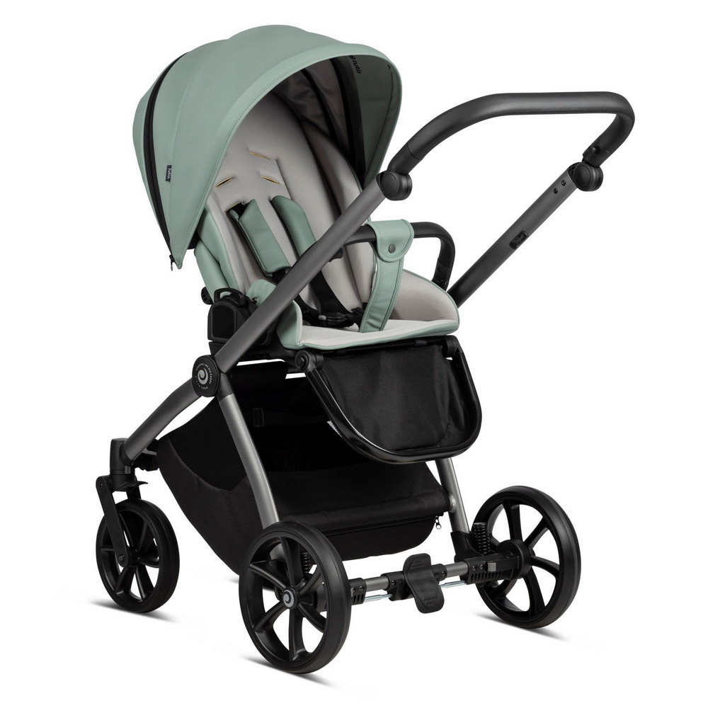Коляска 2 в 1 Tutis Mio имеет систему двойной амортизации, которая включает в себя амортизацию передних и задних колес для обеспечения плавных и комфортных прогулок и маневренности коляски. Передняя амортизация нового поколения обеспечивает гораздо лучшую амортизацию и продлевает срок службы шасси.