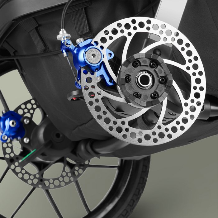 - Дисковая тормозная система коляски более надежная и чувствительная по сравнению с более распространенной барабанной системой