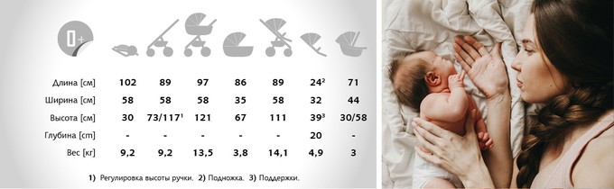 - Возможность крепления люльки, прогулочного блока и автокресла передом или задом к направлению езды