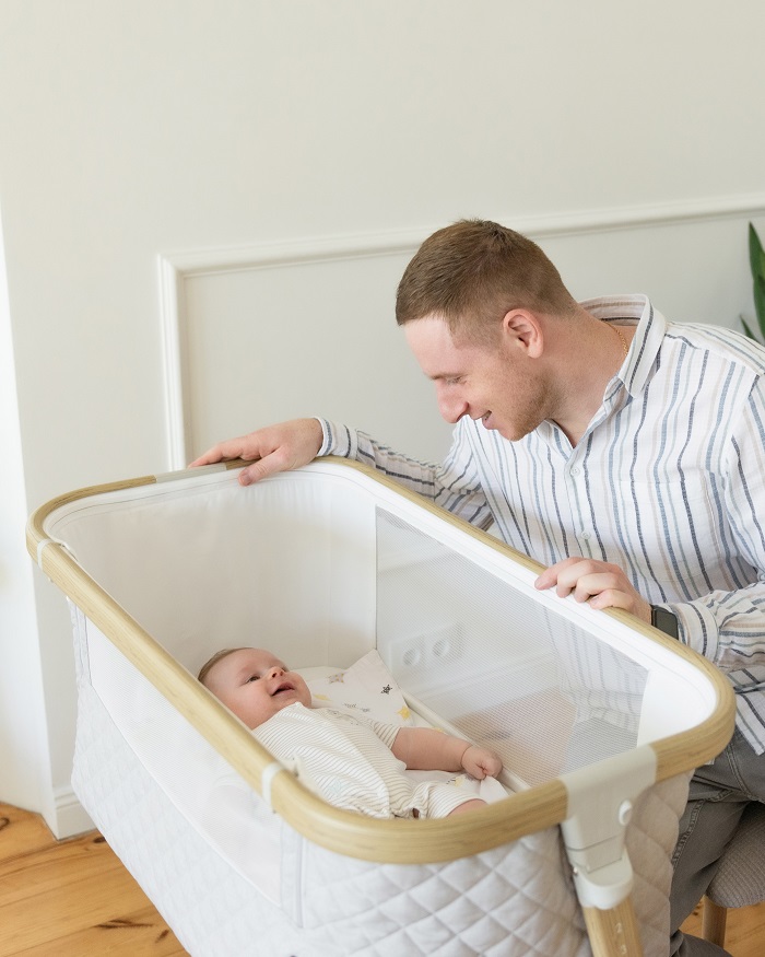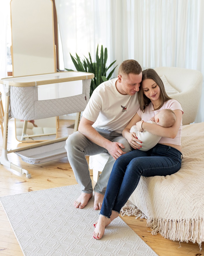Опускающийся передний бортик позволит использовать кроватку как приставную. На ночной сон кроватку можно зафиксировать к взрослой, опустить бортик и наслаждаться совместным безопасный сном рядом с ребенком.