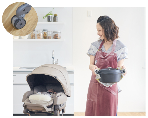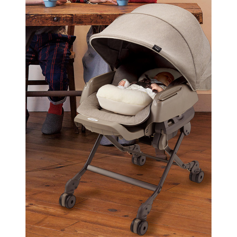 Достаточно поднять спинку как колыбелька Combi Nemulila BEDi превращается в стульчик для кормления. Съемный столик имеет регулировку в 3-х положениях, и благодаря этому отрегулировать правильное положение не составит труда. Стульчик имеет регулировку по высоте для различного возраста ребенка. Высокая мобильность обусловлена наличием 4-х колес которые вращаются на 360º, но, в случае необходимости, они могут быть зафиксированы благодаря стопорам. Вместительный контейнер сбоку для хранения нужных вещей и средств для ухода за ребенком.