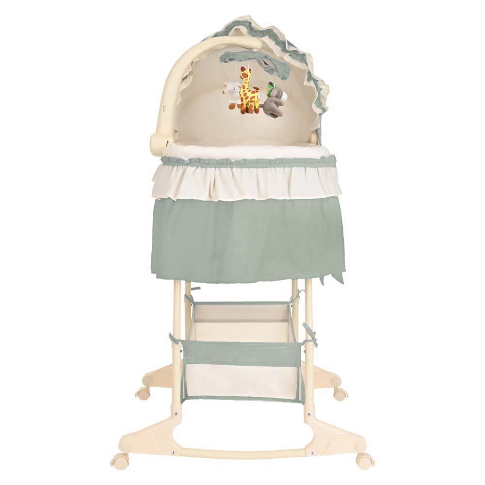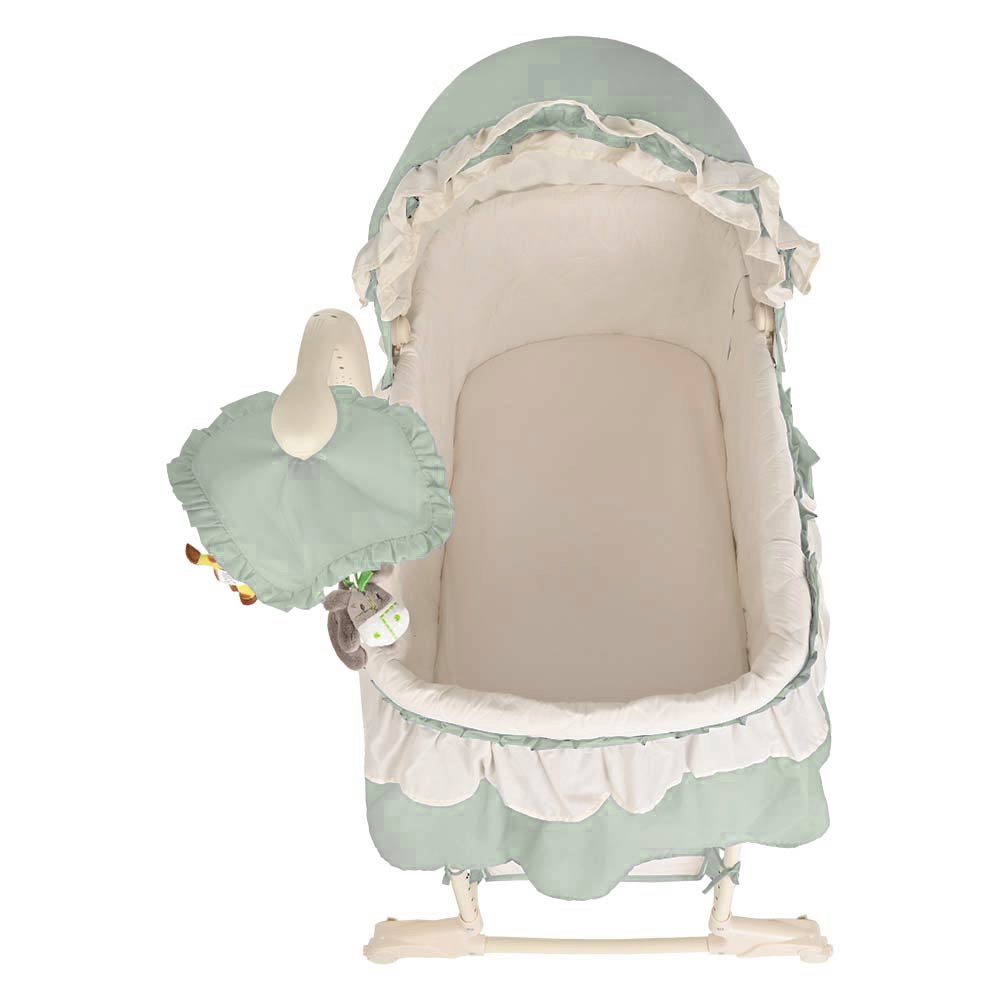 Колыбелька оснащена музыкальным мобилем с игрушками и мерцающими огоньками, которые можно использовать как ночник. Мобилем можно управлять с пульта.