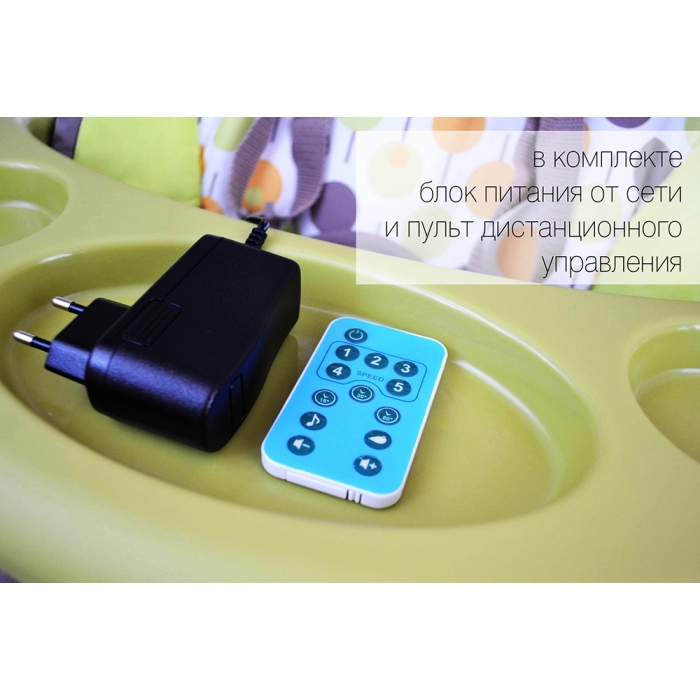 В комплекте: Вкладыш, съемный столик, мобиль, пульт ДУ.