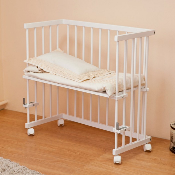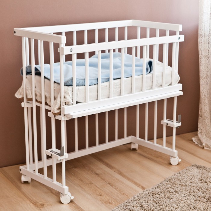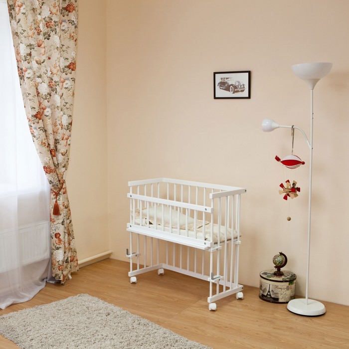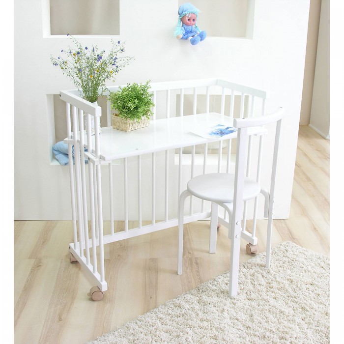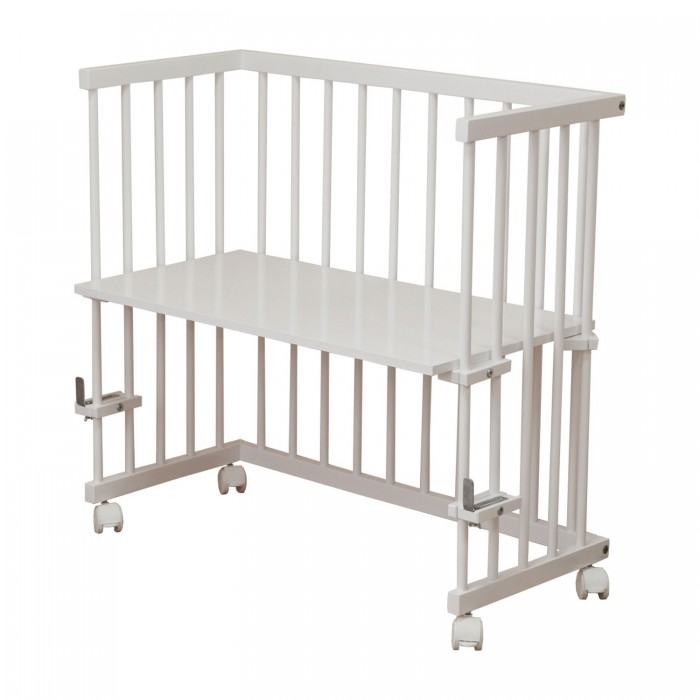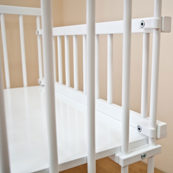 - Кровать 2 в 1: полноценная кроватка и приставная кровать, без одного бокового ограждения.