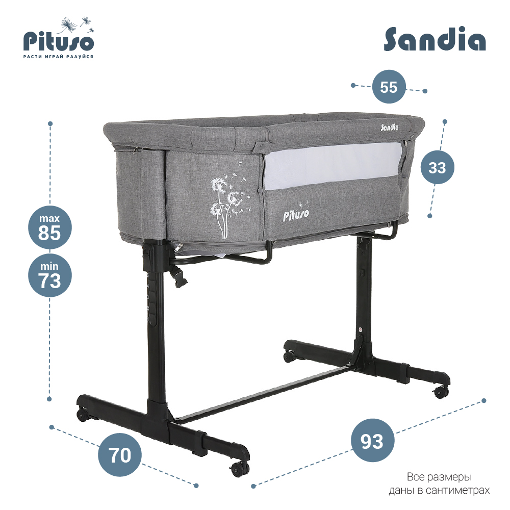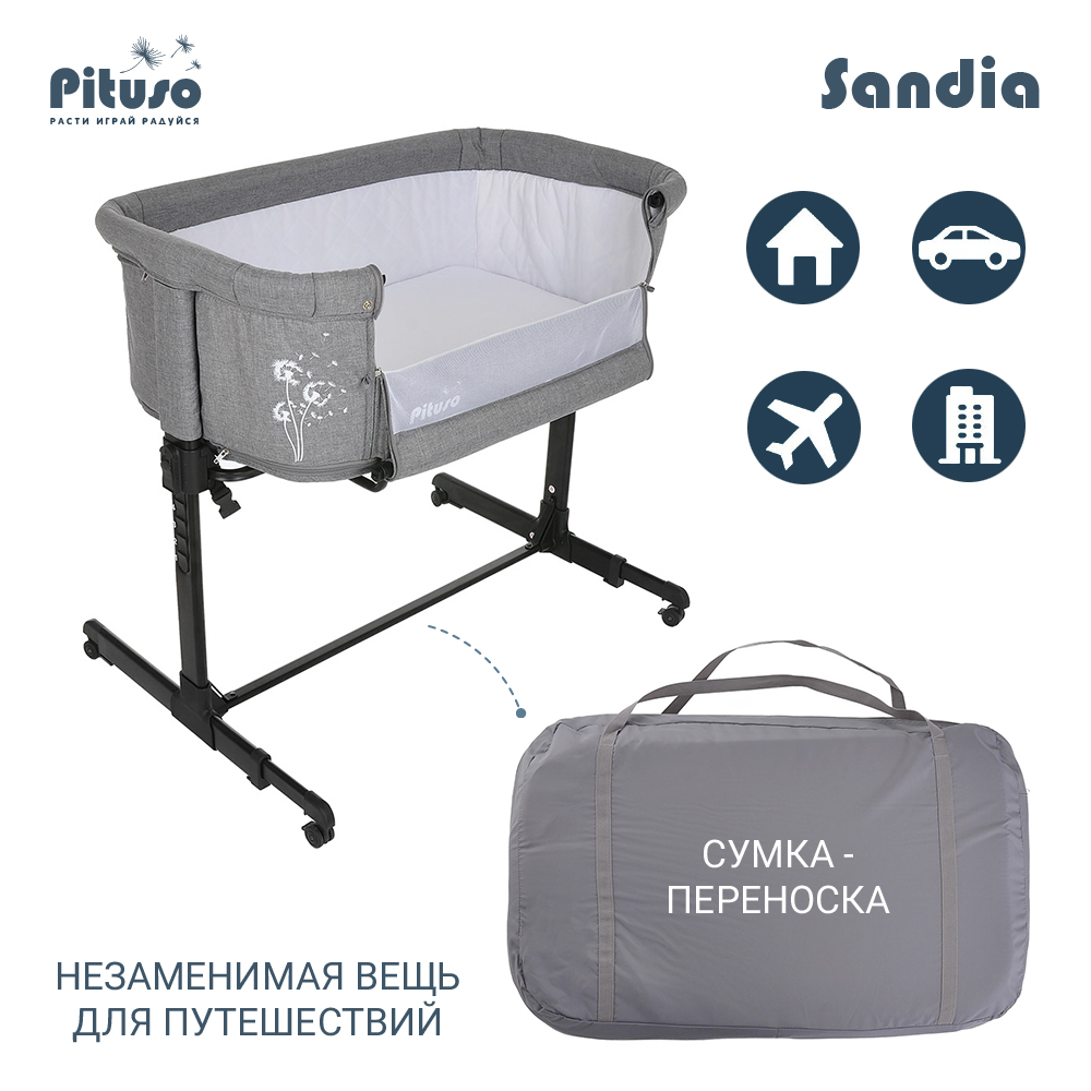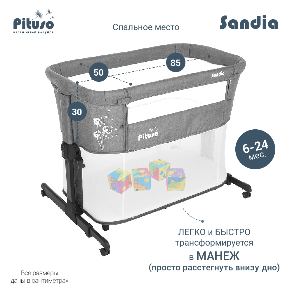 Колыбель манеж PITUSO Sandia 3 в 1 (Питусо Сандия) - кроватка, которая сочетает в себе сразу несколько удобных функций: колыбель, приставная кровать и манеж.