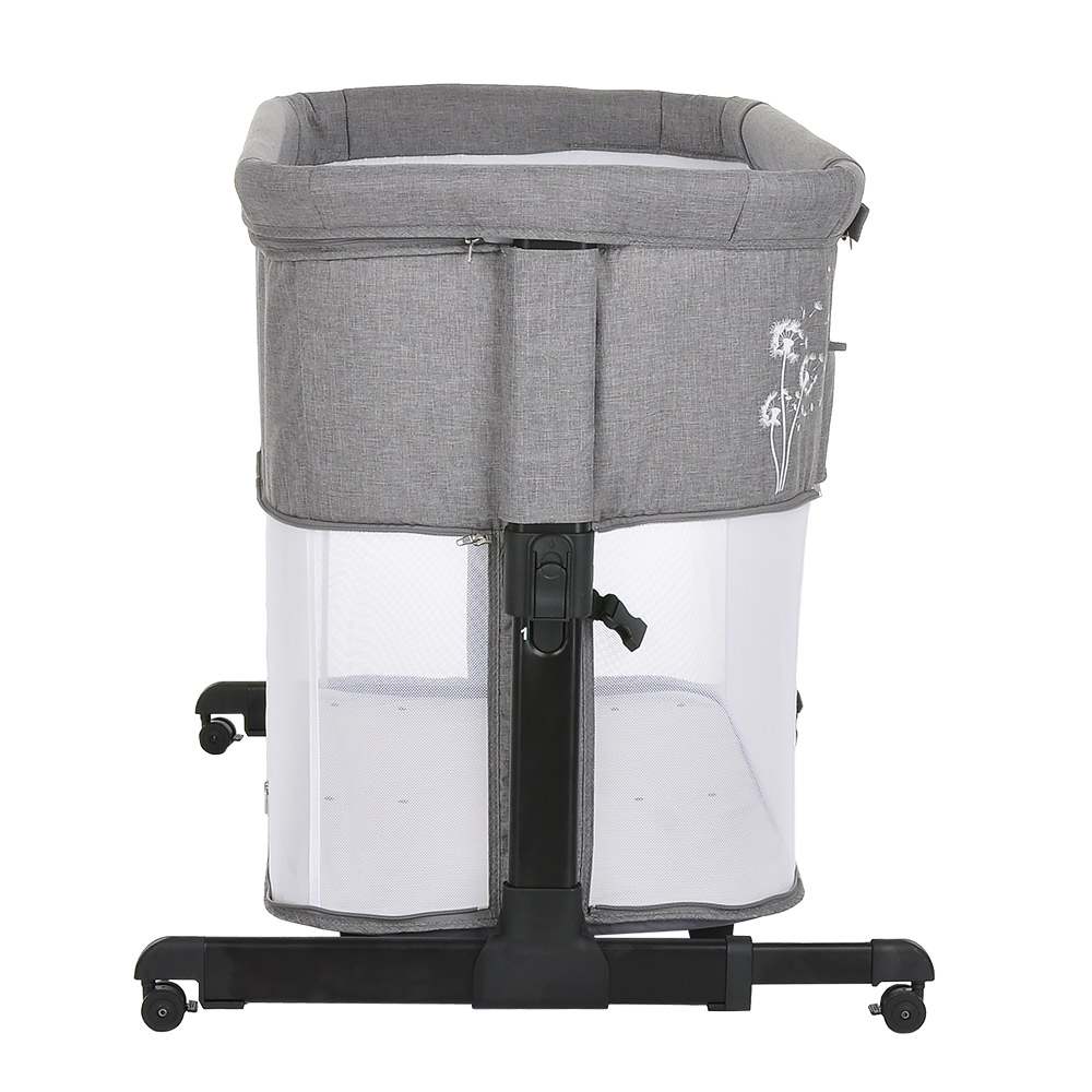 - Для лучшего обзора ребенка и дополнительной вентиляции колыбель оснащена сеткой на боковой стенке