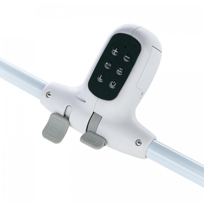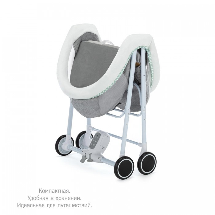 На панели управления присутствуют кнопки включения/выключения питания, регулировки скорости укачивания (предусмотрено 5 скоростей), громкости музыкального сопровождения. А наличие таймера позволяет выбрать один из трех режимов работы — на 8, 15 или 30 минут. В том случае, если таймер не используется, все функции будут работать до отключения питания.