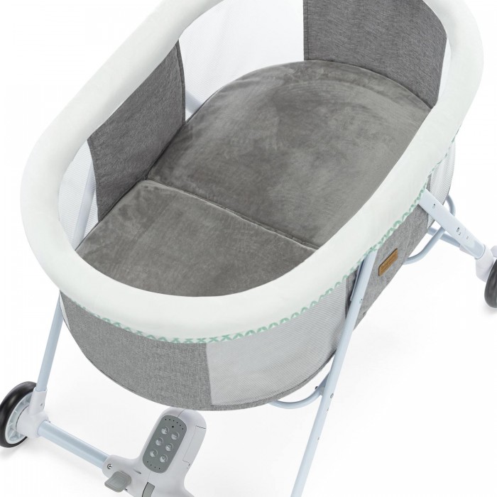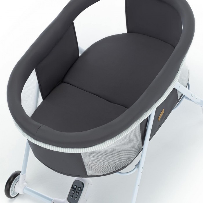 При автоматическом укачивании колыбель выполняет движения назад-вперед с амплитудой в 3 см, а также проигрывает музыкальные мелодии из подключенного USB-накопителя (плеер или флеш-карта). Для этого на передней колесной базе расположена панель управления, имеющая множество полезных функций. Там же расположены педали сцепления и тормоза, позволяющие запустить или остановить качание.