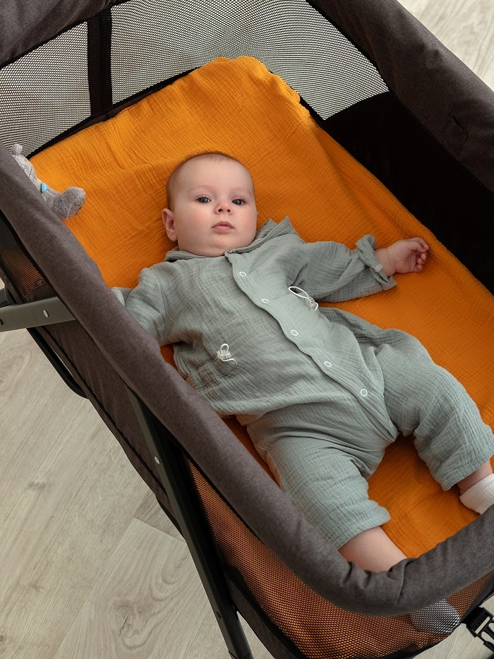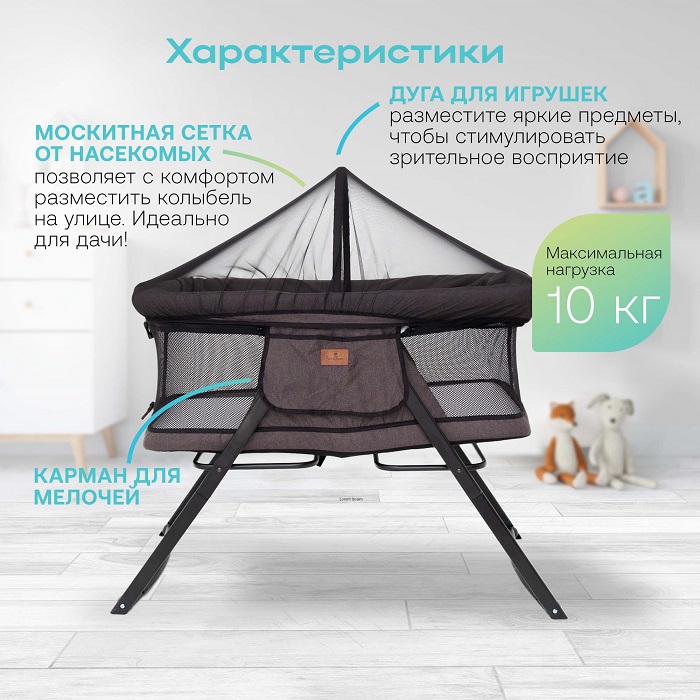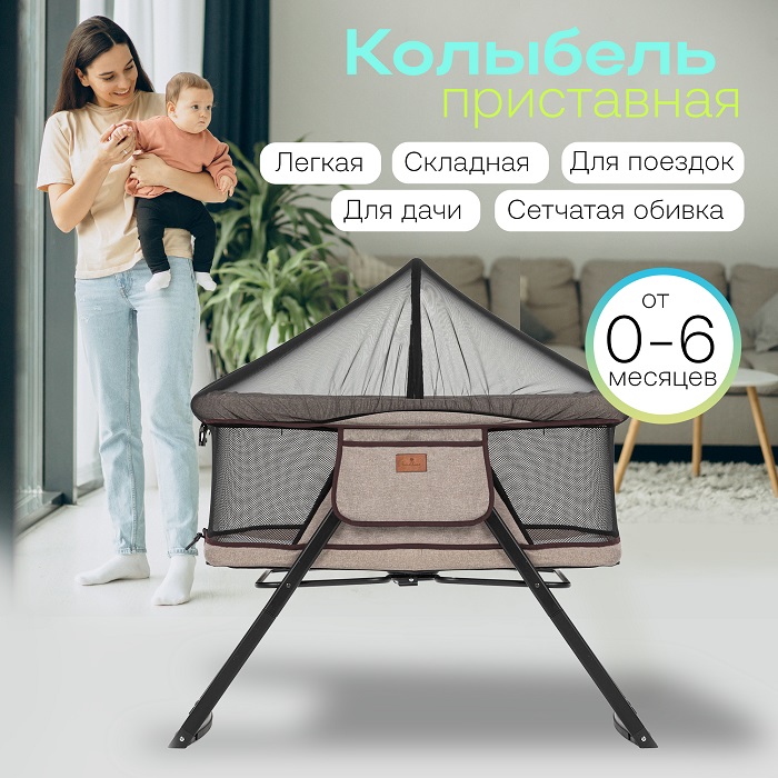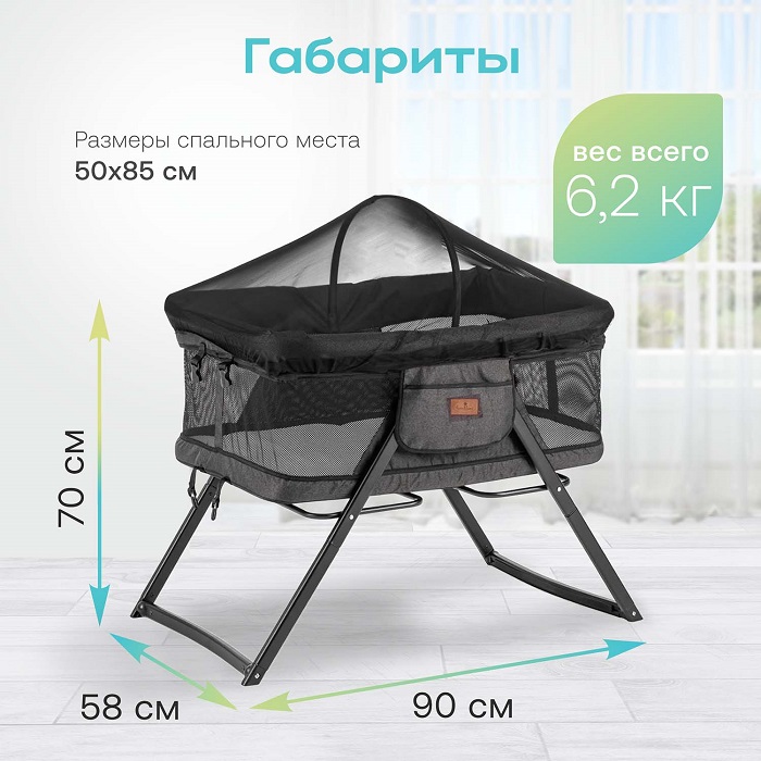 - москитная сетка. В комплект входит москитная сетка, которая полностью закрывает ребенка от назойливых насекомых, пыли, листьев и тд. Москитная сетка позволит использовать кроватку на свежем воздухе (пикник, дача, море) и не переживать, что кто то потревожит сон ребенка.