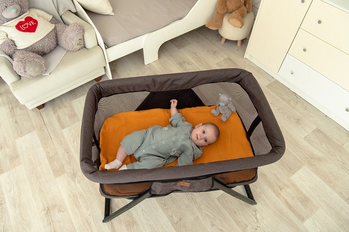 - компактное сложение. Кроватка очень легко и быстро складывается до компактных размеров. Ее легко брать с собой в путешествие, поездку в гости, в поезд.