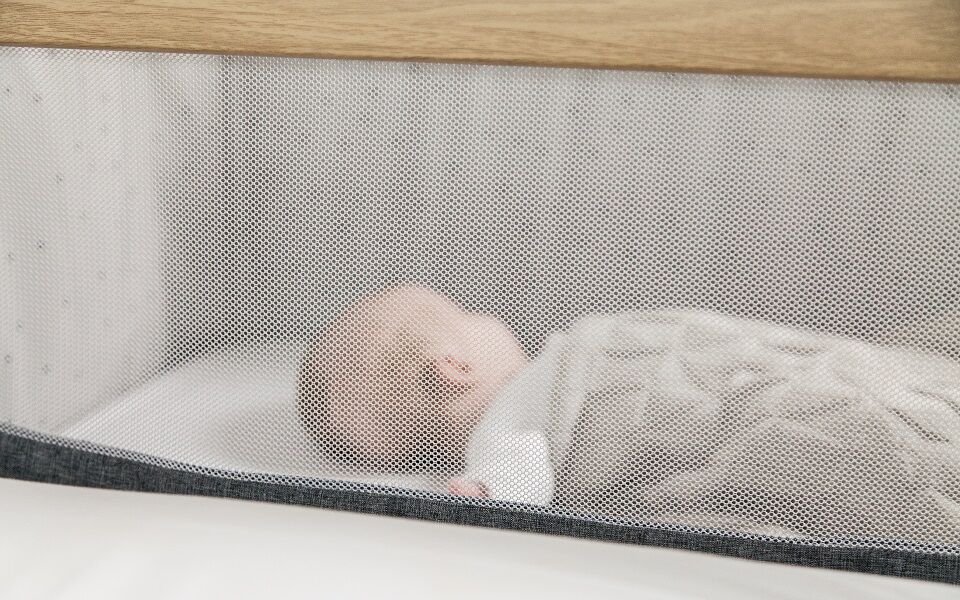 Один бортик выполнен из сетчатой дышащей ткани, чтобы удобно наблюдать за малышом.