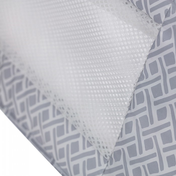 Уютная люлька имеет привлекательные овальные очертания, ее внутренние размеры достаточно просторны и позволяют уютно разместить в ней ребенка. Чехол сделан из плотной ткани, внутри находится упругий матрасик, к которому прилагается простынка на резинке.