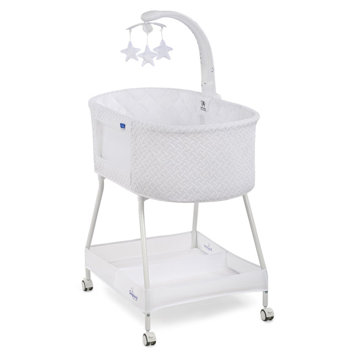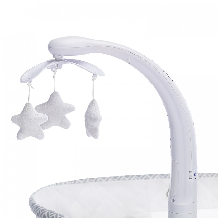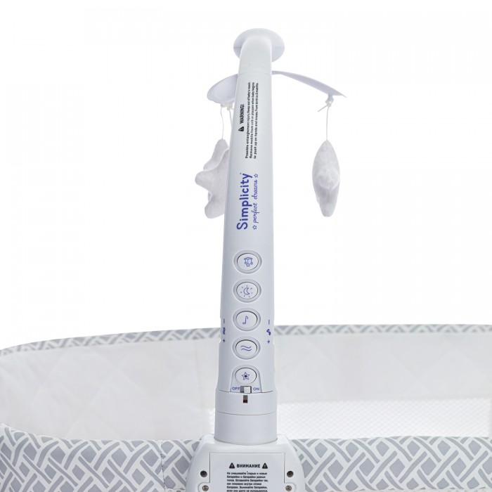 Среди преимуществ Simplicity 25020 Classic выделяется электронный мобиль с подвесными игрушками, совмещенный с блоком управления колыбелью. Мобиль работает от батареек и выполняет одновременно несколько функций: вращает карусель с подвесными мягкими игрушками, осуществляет музыкальное сопровождение с синхронно мерцающими огоньками, которые помогут успокоить или развлечь малыша, включает вибрацию и ночную подсветку. Вибромассаж станет особенно полезным в периоды беспокойства от коликов. Работа устройства регулируется таймером, предусмотрено изменение интенсивности виброукачивания и громкости музыкальных мелодий. Мобиль можно установить как на правом, так и на левом бортике люльки.