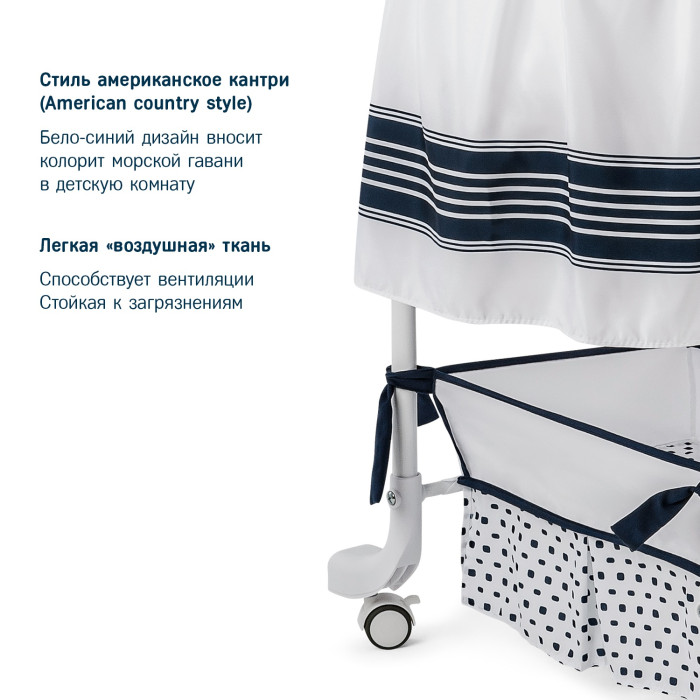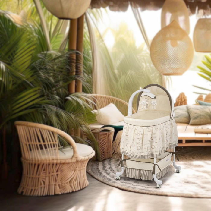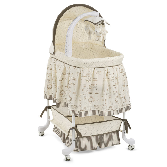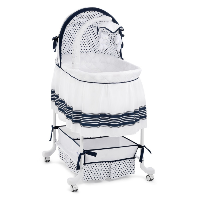 Колыбелька на специальных полозьях для ручного укачивания (из стороны в сторону). Есть специальные фиксаторы, которые защищают колыбельку от опрокидывания.