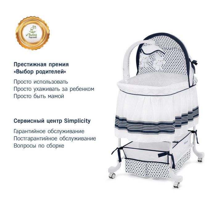 Колыбель Simplicity 3070L — прекрасное сочетание очаровательного и современного внешнего вида, а также полезного функционала. Она понравится как малышу, так и родителям и станет настоящим украшением для детской комнаты.