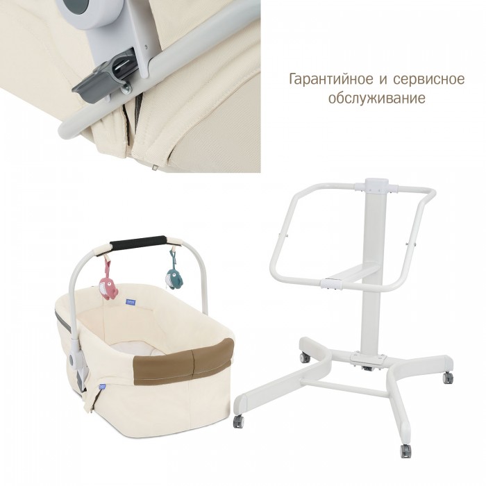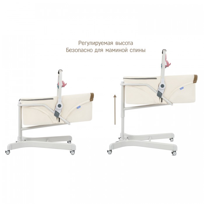 1. Мобильная кроватка для ребенка с рождения. Качественная кроватка из экологически безопасных материалов с твердым и ровным дном, высокими бортиками и мягким матрасиком. Она стоит на устойчивой базе оснащенной практичными колесами со стопорами и удобной педалькой для регулировки модуля по высоте. В такой кроватке удобно перевозить ребенка из комнаты в комнату. Вы сможете заниматься своими делами и быть рядом с малышом. Кроватка оснащена удобным капюшоном с игрушками для создания более уютной атмосферы для сна или бодрствования. Если кроватка используется на даче или на природе, то обязательно пригодится москитная сетка, которая уже входит в комплект.