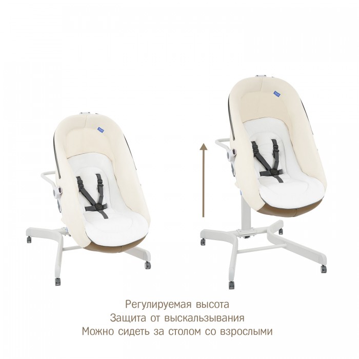 3-4. Шезлонг или стульчик. Когда ребенок немного подрастет, и ему будет не интересно лежать в люльке во время бодрствования, Вы сможете приподнять спинку кроватки, установить ремни безопасности и дать ребенку возможность удобно наблюдать за родителями и окружающим миром.