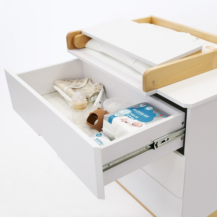Съемный пеленальный столик позволит организовать удобное место для переодевания ребенка на удобной для вас высоте.