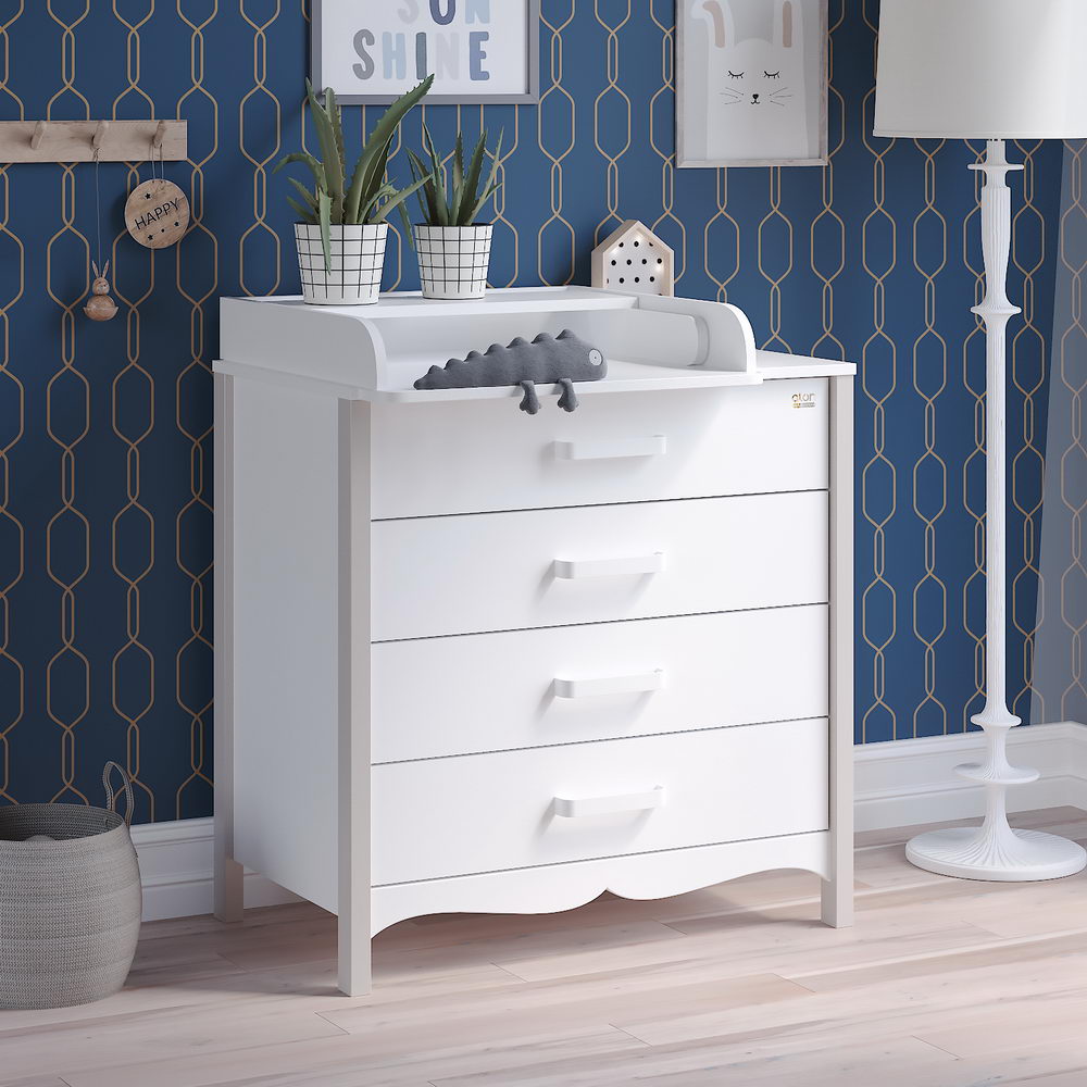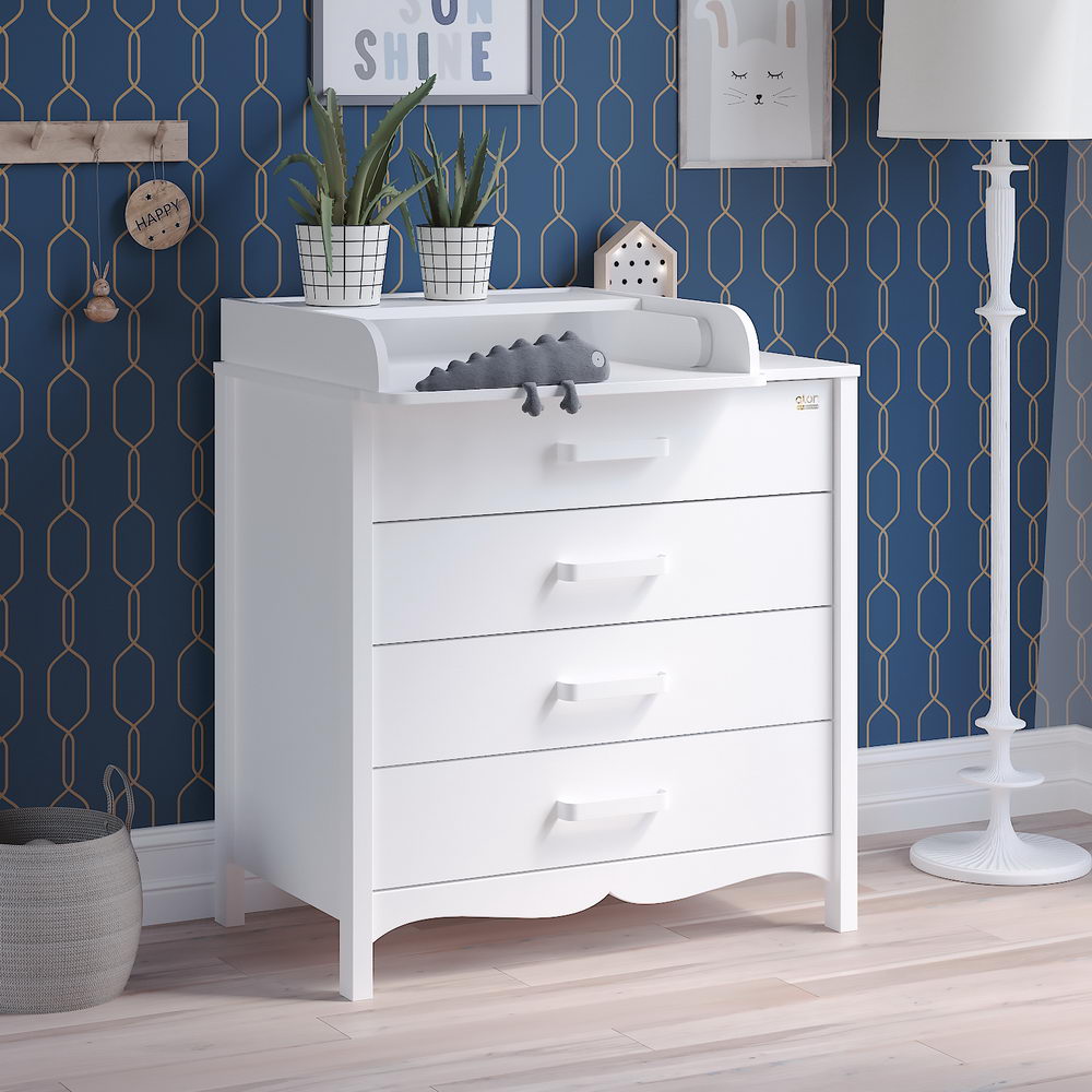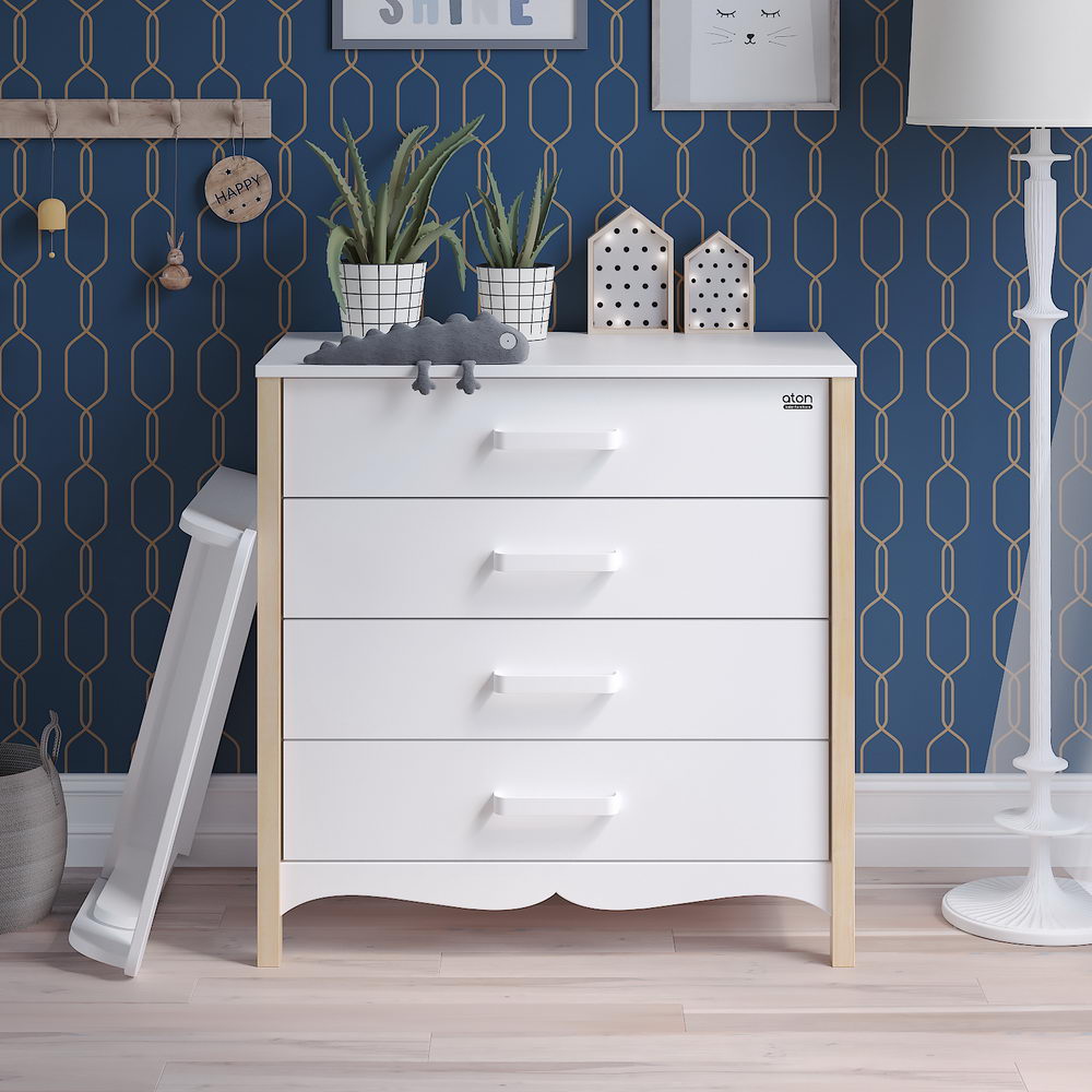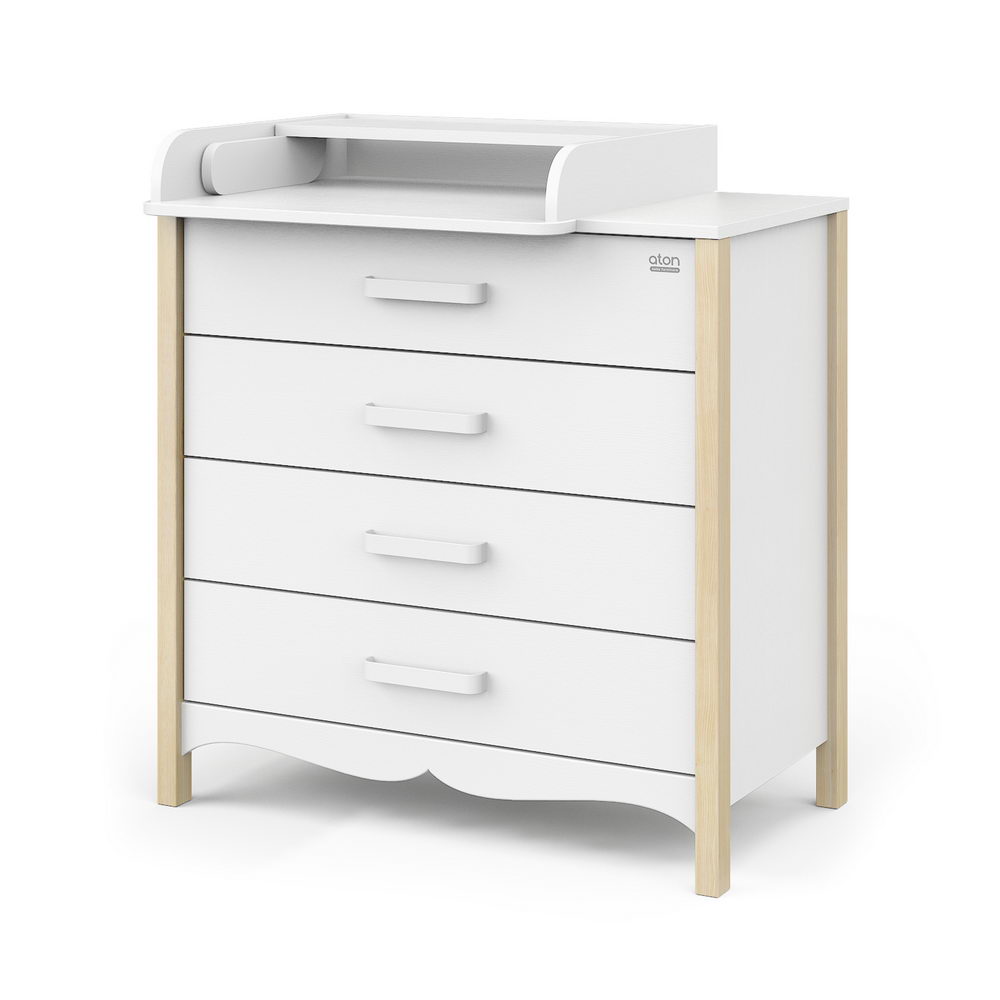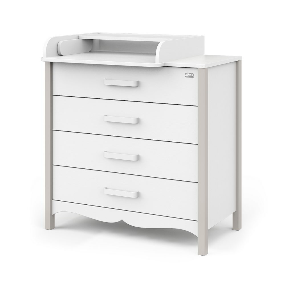 Комод АТОН Felix (Атон Феликс) - очень красивый, изысканный бельевой комод со съемным пеленальным столиком. Оригинальный дизайн и интересные расцветки украсят любую детскую комнату или гостиную. 4 вместительных ящика позволят удобно и компактно разместить все вещи для ребенка. Ящики открываются тихо и плавно и не потревожат чуткий сон ребенка. Практичные и удобные ручки сделаны из металла в цвет комода, с закругленными уголками. Комод просторный и очень вместительный.