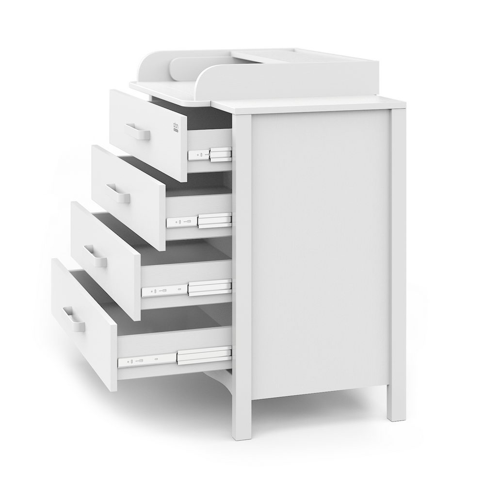 - Раскладной пеленальный столик можно установить слева, справа или по центру, он легко снимается, не оставляя никаких следов на столешнице, получается обычный комод.