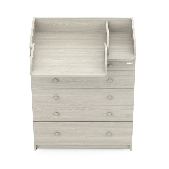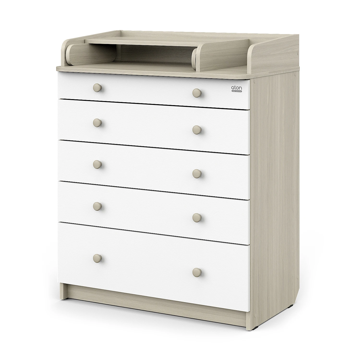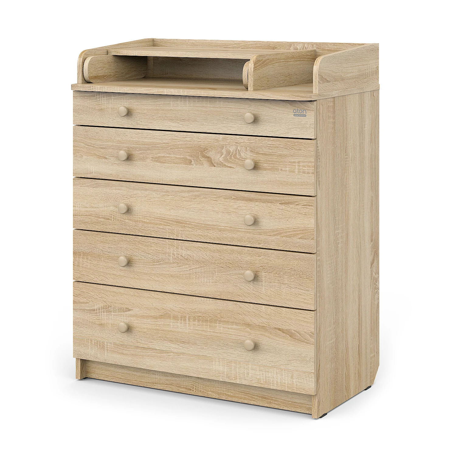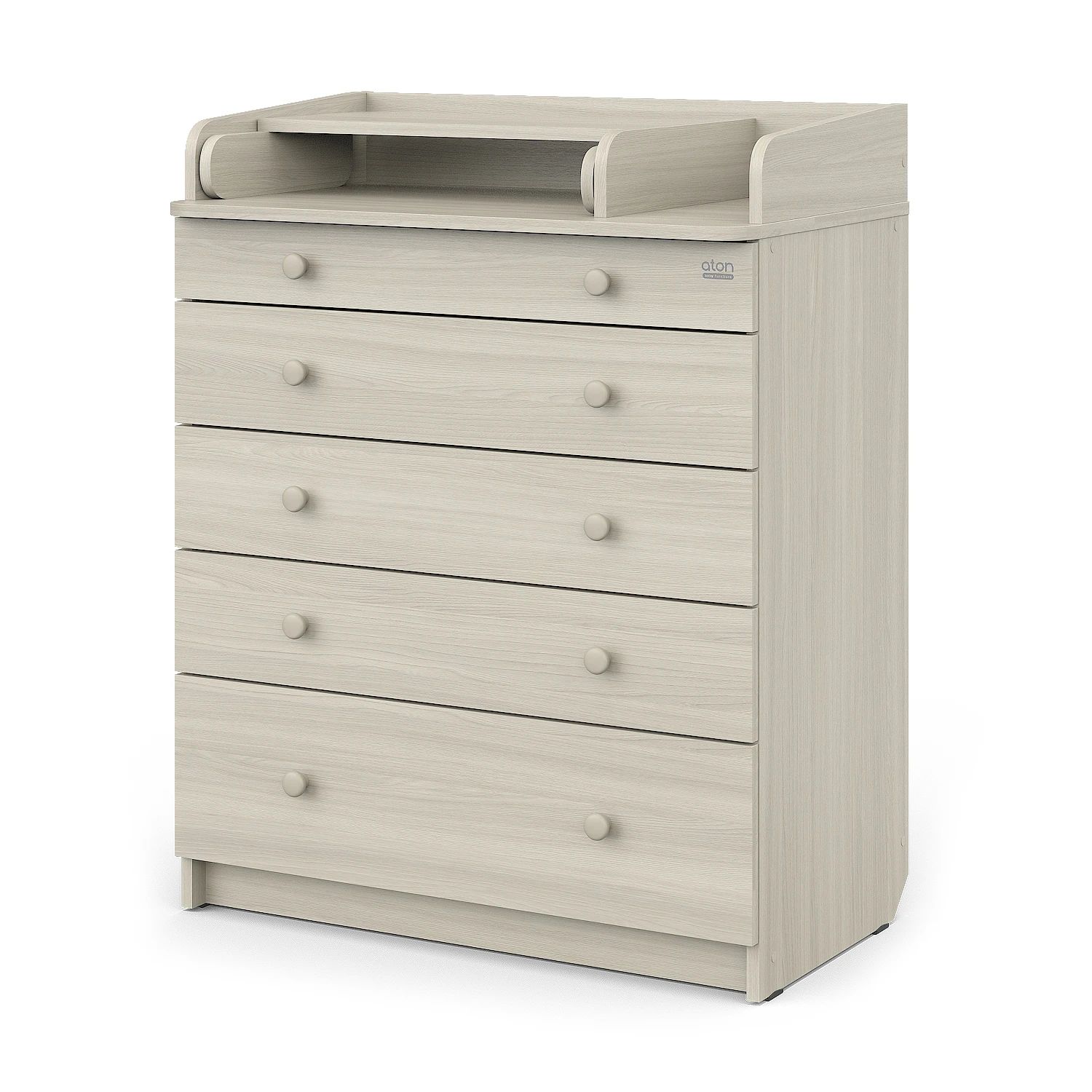 Комод Атон LEO ЛДСП 800/5 с органайзером (Атон лео) - идеальное решение для организации хранения детских вещей и создания уютного пространства в детской комнате. Благодаря раскладному пеленальному столику родители смогут удобно переодевать, пеленать ребенка, проводить необходимые гигиенические процедуры в первые месяцы после рождения ребенка. В дальнейшем складной пеленальный столик можно использовать как дополнительное место для хранения вещей, игрушек.