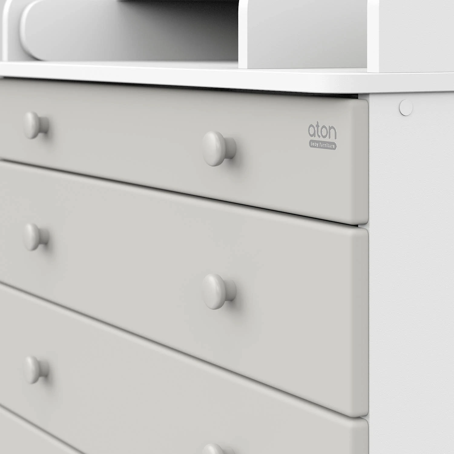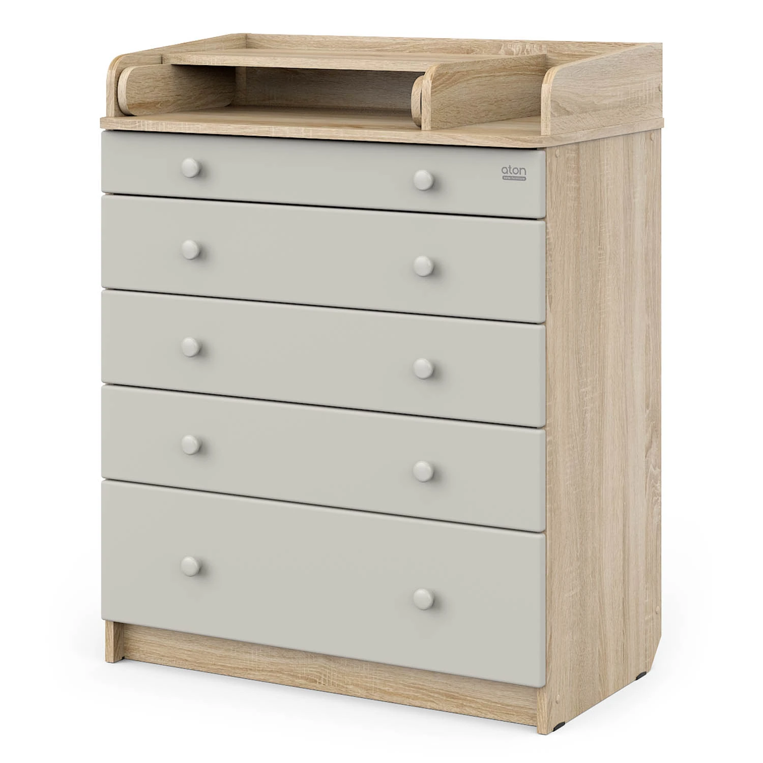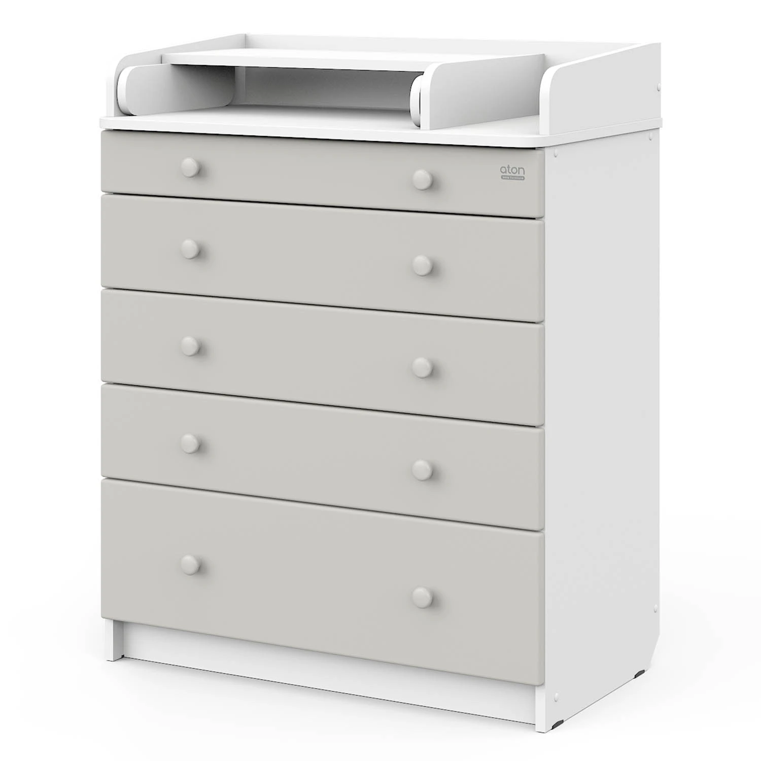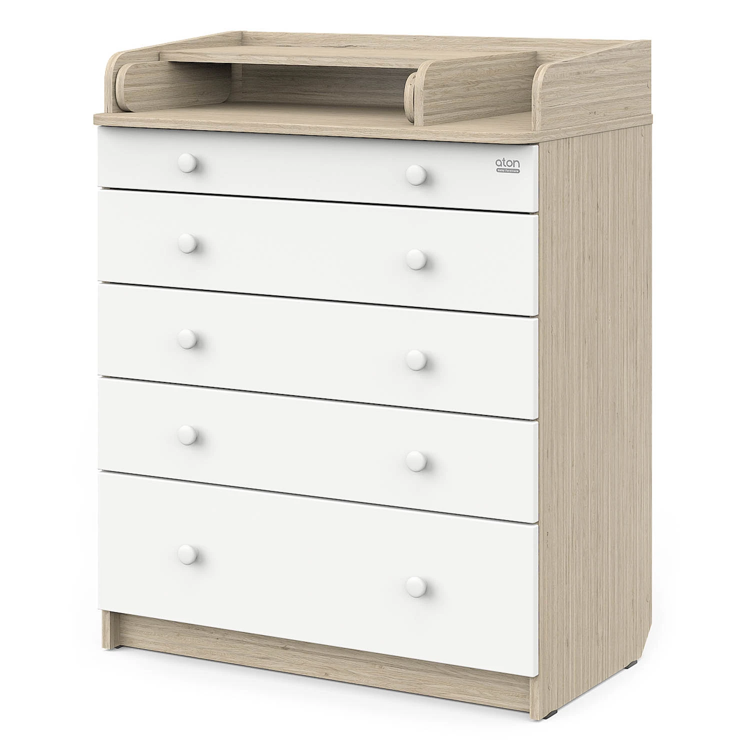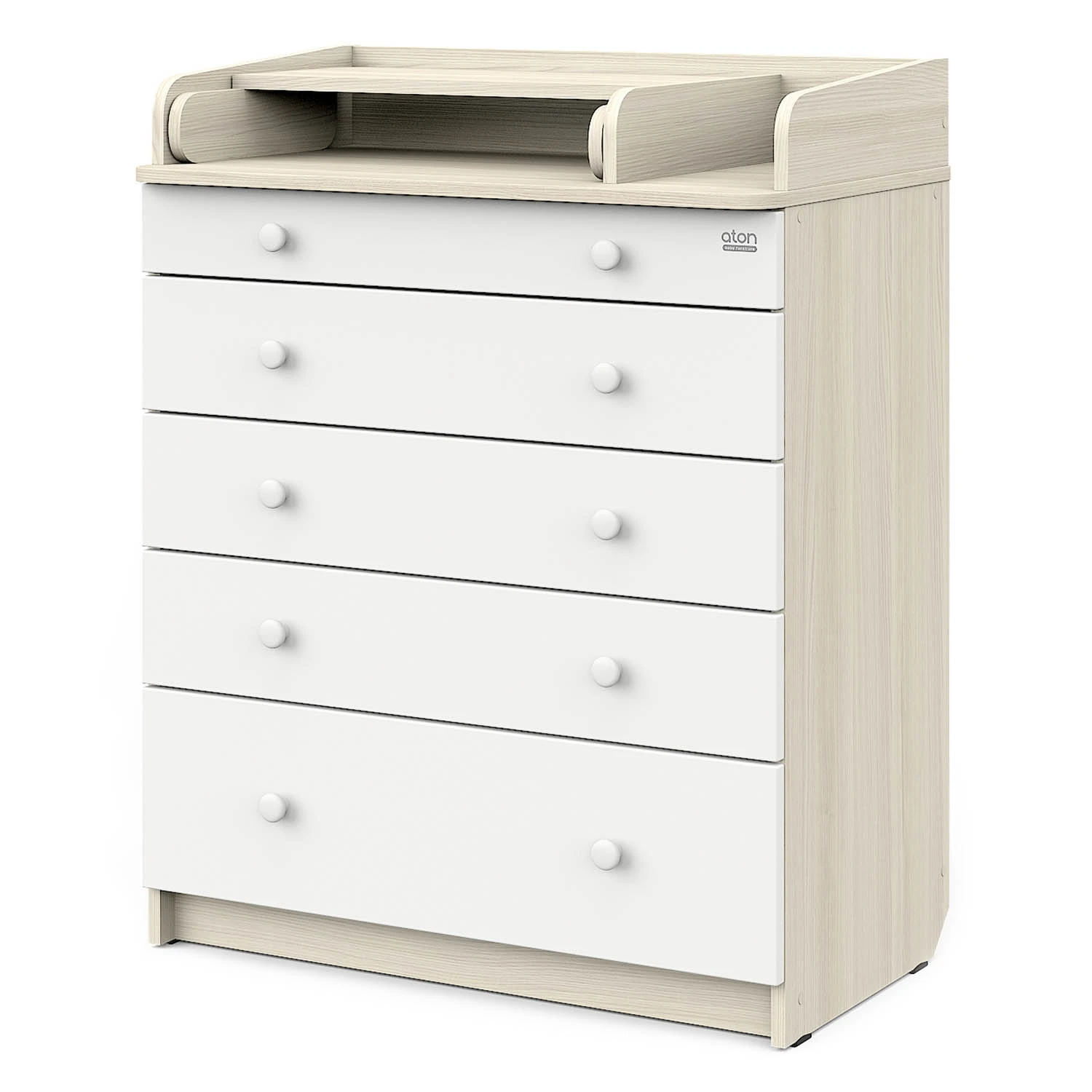 Комод Атон MAKS ЛДСП 800/5 (Атон Макс) - элегантный, выполненный в современном стиле и удобный пеленальный комод, в комбинациях контрастных оттенков благородной древесины с нежными, приятными на ощупь, белыми или бежевыми фасадами из МДФ с шариковыми направляющими.