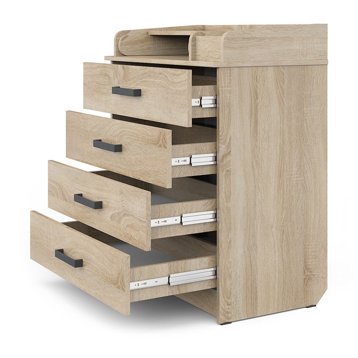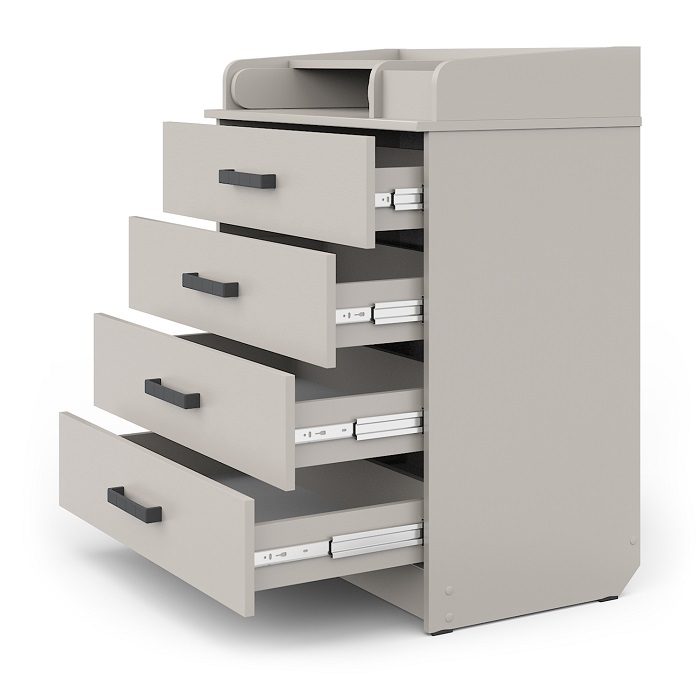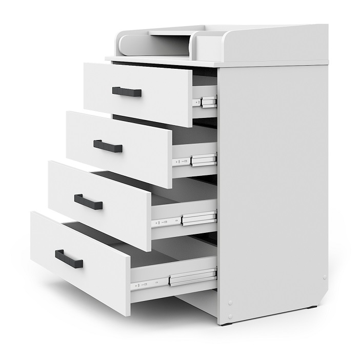 - Вместительные ящики комода оснащены надежными бесшумными шариковыми направляющими, что делает использование комода плавным и бесшумным. Это особенно важно, когда нужно извлечь вещи из ящиков, не беспокоя малыша своими звуками.