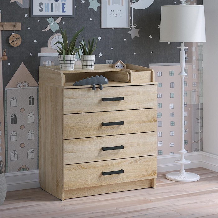 Главное украшение комода - премиальное ЛДСП с имитацией древесины благородных пород дерева и невероятные расцветки, которые украсят и подчеркнут любой дизайн. Такой комод прекрасно будет смотреться не только в детской комнате, но и в гостиной, спальне или большей прихожей.