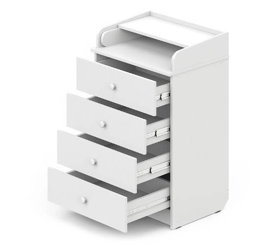 Комод Атон Merlin ЛДСП 600/4 (Атон мерлин) - компактный и функциональный комод со складным пеленальным столиком. Всего 60,2 см в ширину комод позволит удобно разместить все детские вещи, косметику, игрушки, подгузники, а так же позволит первые месяцы после рождения удобно переодевать его на пеленальном столике.