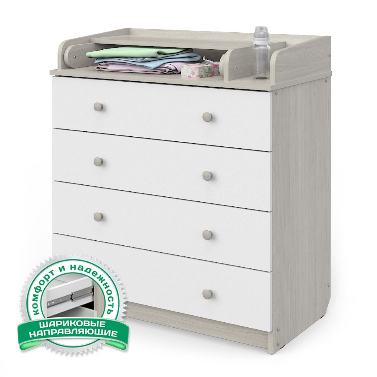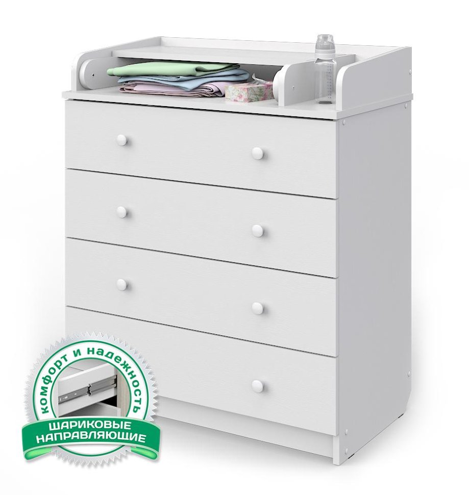 Комод Атон Сириус-2 804 ЛДСП - удобный и практичный комод с пеленальным столиком – незаменимый предмет для детской комнаты. Пеленальный столик с откидной крышкой не только помогает маме в переодевании ребенка, но при этом экономит пространство в помещении за счет удобного механизма складывания. 4 вместительных ящика с лёгкостью выдвигаются и задвигаются на шариковых направляющих. На столешнице предусмотрено специальное место для предметов первой необходимости, чтобы было "все под рукой"!