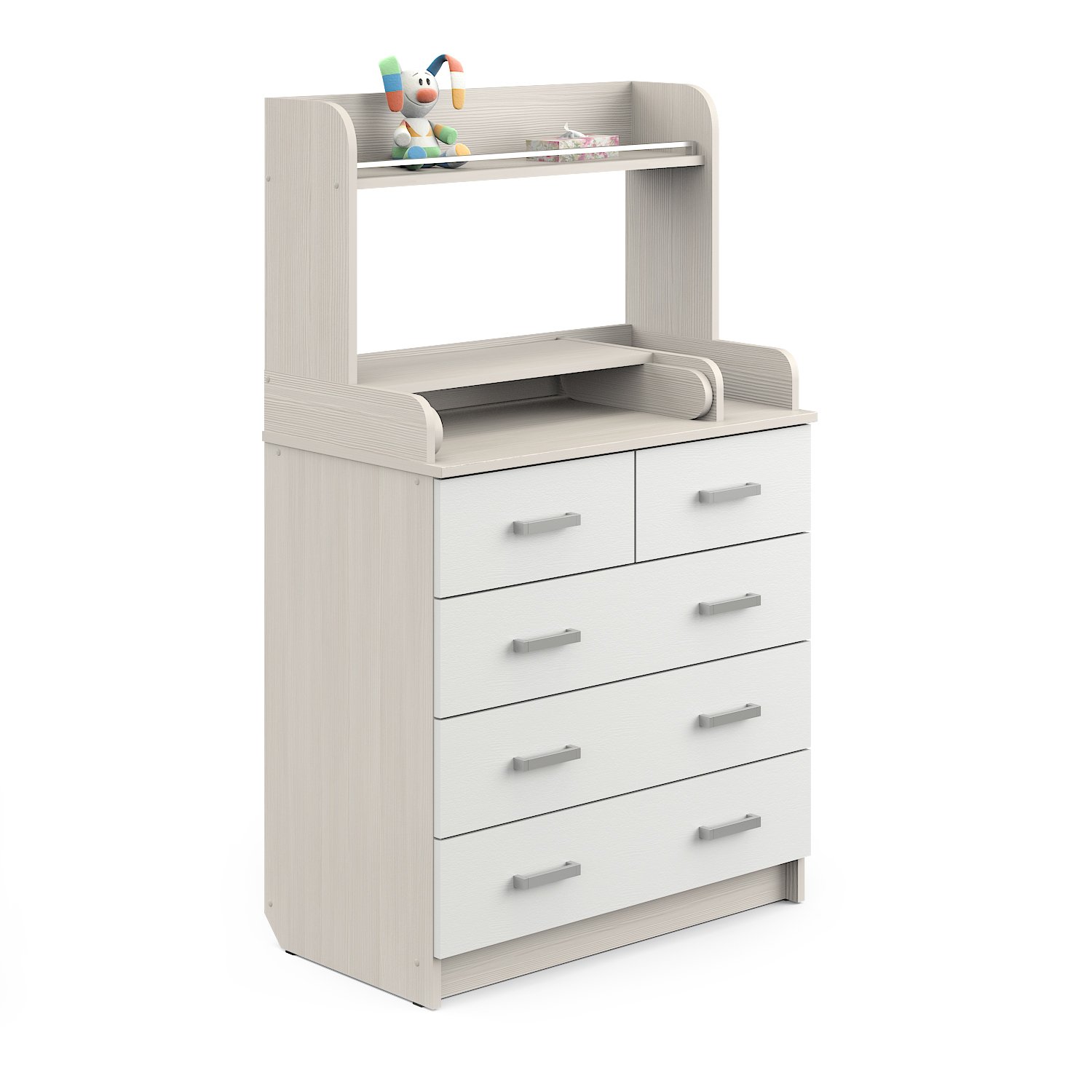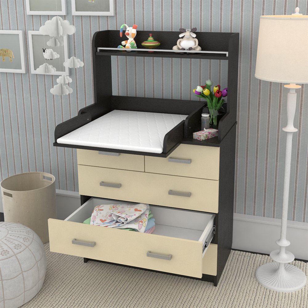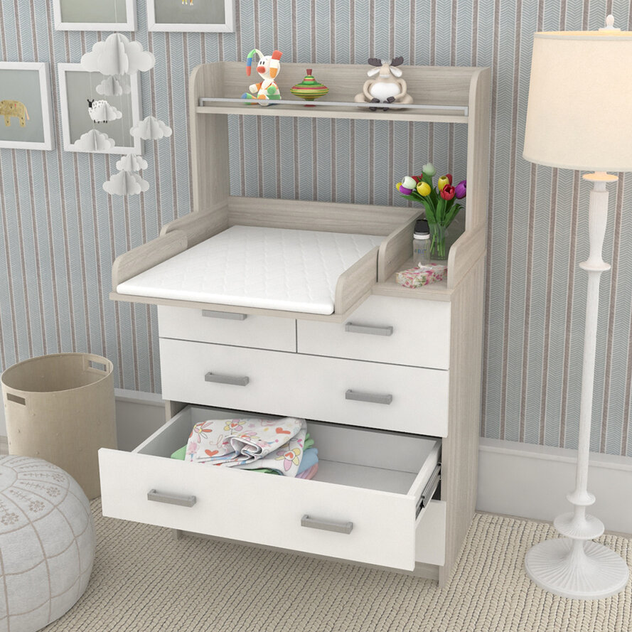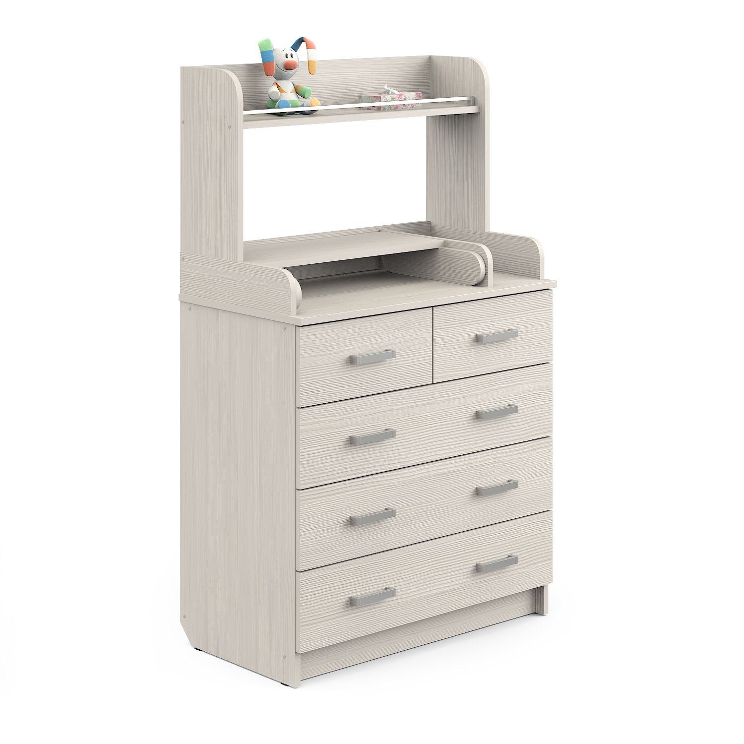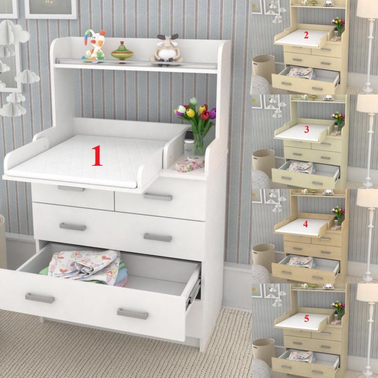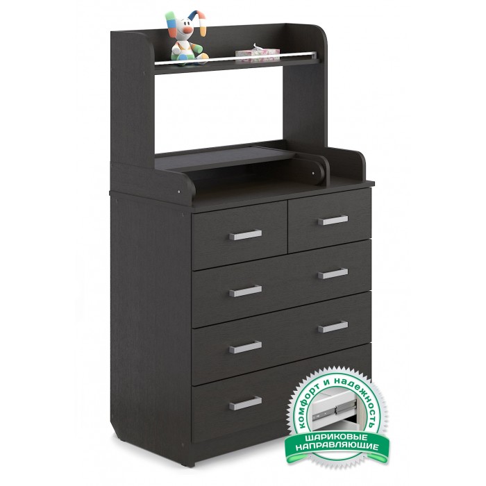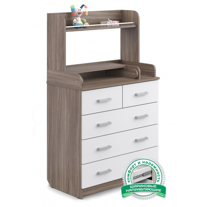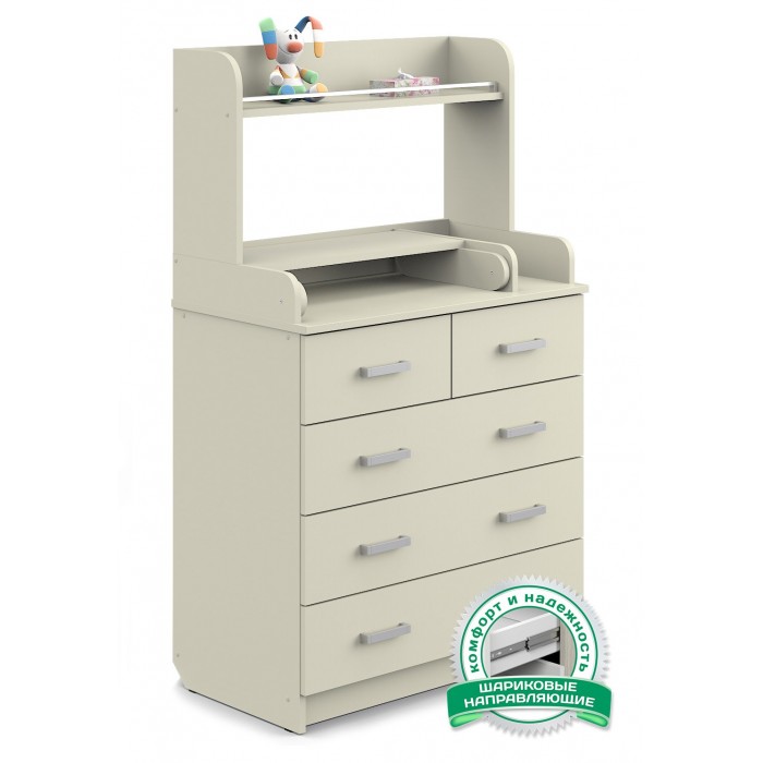 Комод Атон Сириус-2 Полка 805 пеленальный ЛДСП (5 ящиков) - практичный комод с пеленальной поверхностью и дополнительными полочками. В этом комоде места хватит всему, что вам понадобится для малыша. 5 удобных закрытых ящиков на шариковых направляющих, открываются плавно и тихо. Столик для переодевания ребенка имеет удобные бортики ограничители и при необходимости легко складывается. Дополнительная полочка для всевозможных баночек, кремов, игрушек и бутылочек.