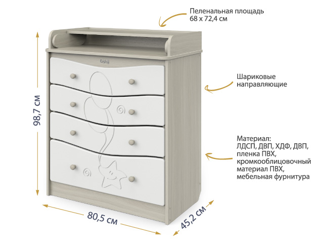 Комод Атон СИРИУС KRISTOFF 804 (атон сириус кристофф) - Стильный пеленальный комод, выполненный в уникальном дизайне. Плавные элегантные линии помогут создать в детской комнате по настоящему сказочную атмосферу, создают ощущение мягкости и пластичности.
