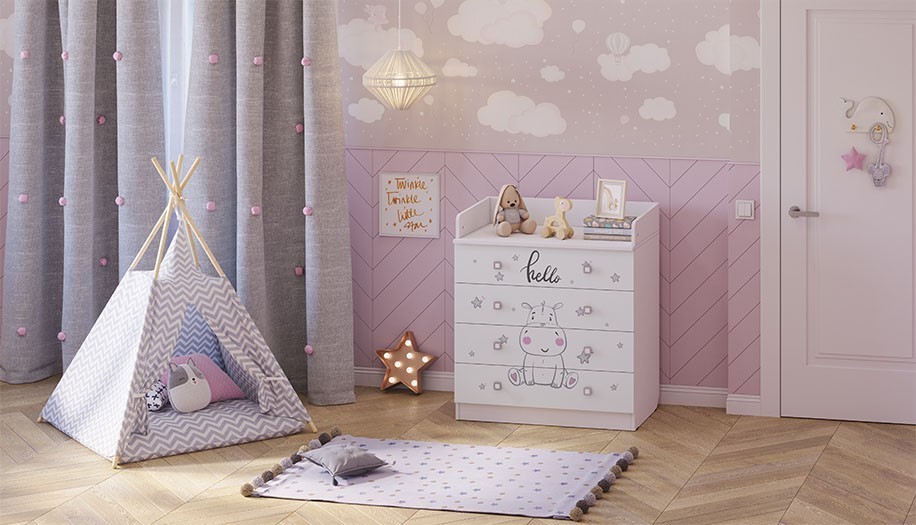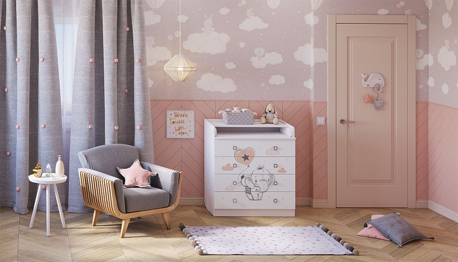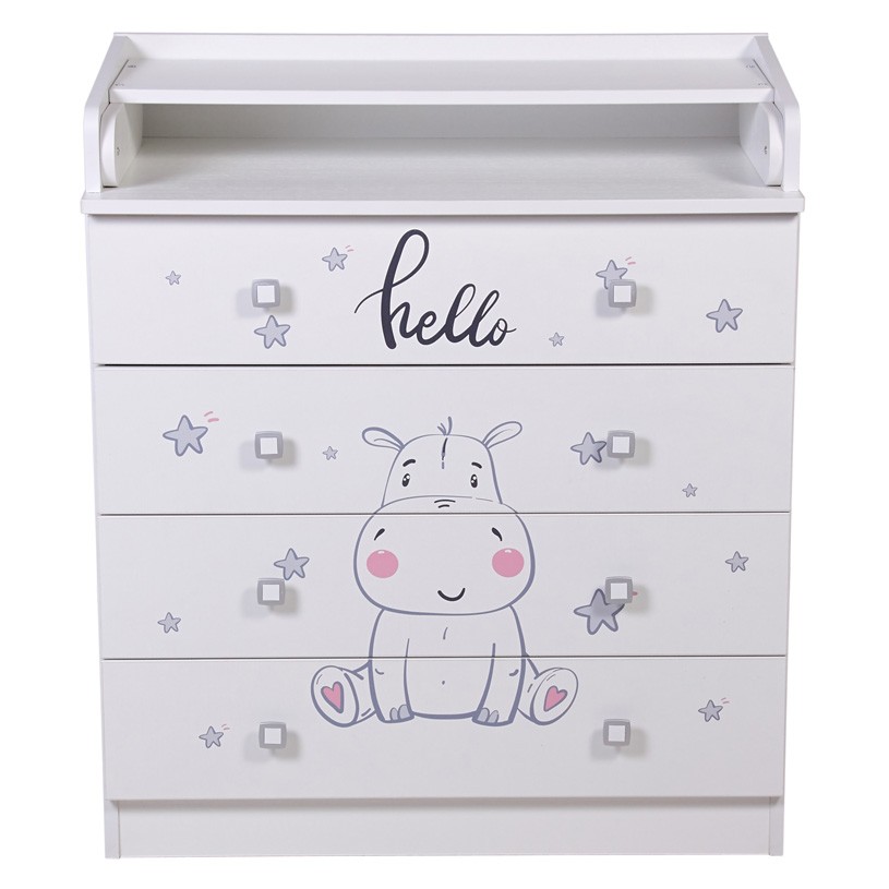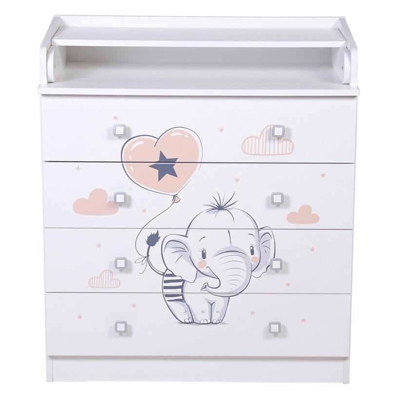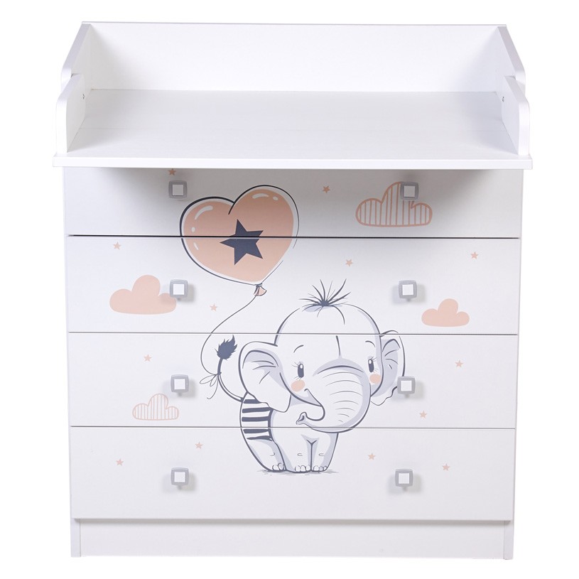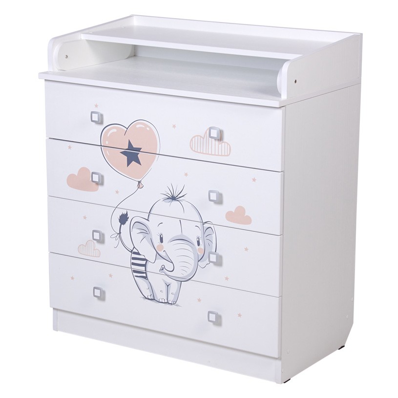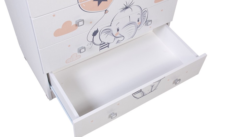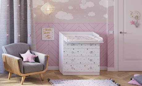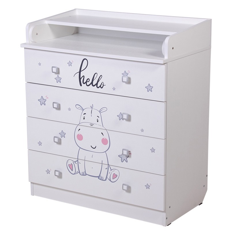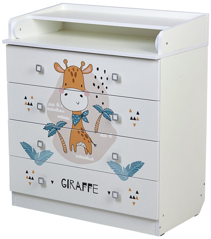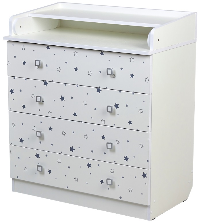 Комод Фея 1580 с рисунком - детский комод оснащен откидным пеленальным столиком, благодаря чему отлично подходит для смены подгузника, массажа или переодевания ребенка. При откидывании пеленальной поверхности по всем сторонам образуются плавные защитные бортики.