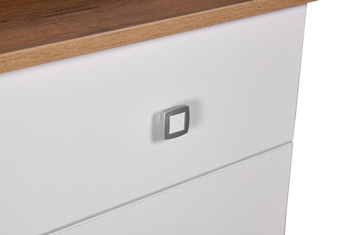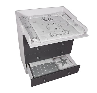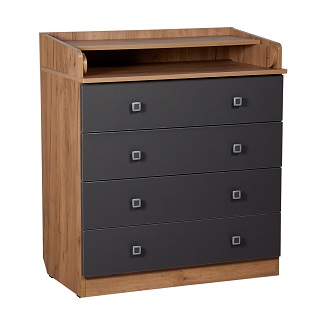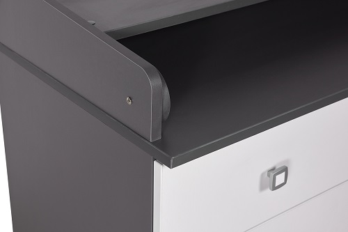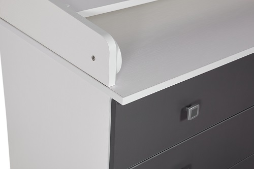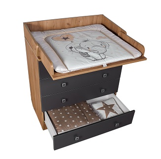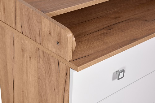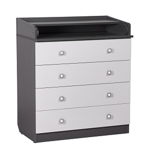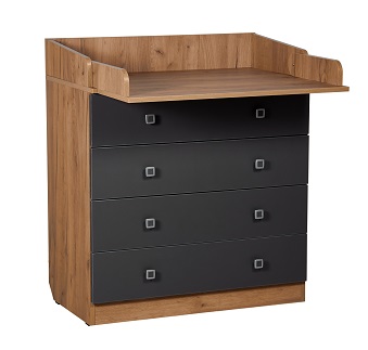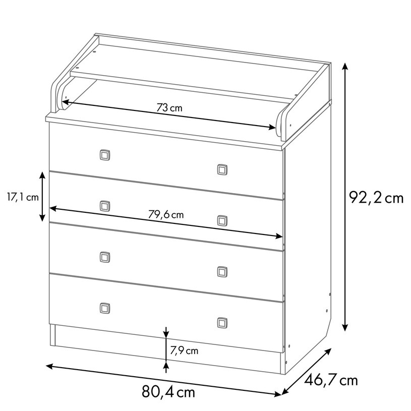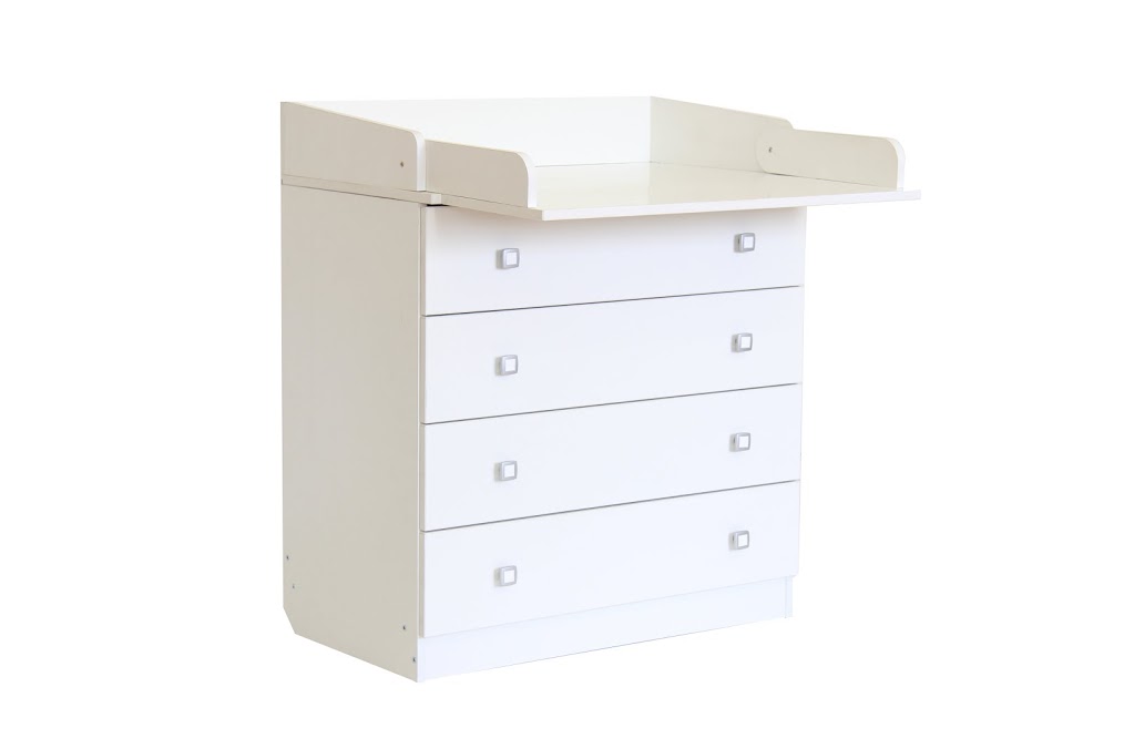 - Вместительные выдвижные ящики комода шириной 80 см с системой плавного закрытия позволят удобно хранить все детские принадлежности. Когда малыш вырастает из возраста пеленания, поверхность может быть снята, тогда комод приобретет классический вид.