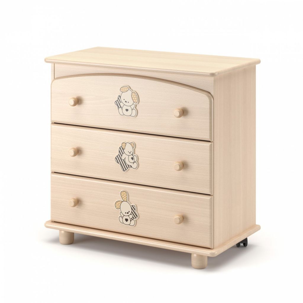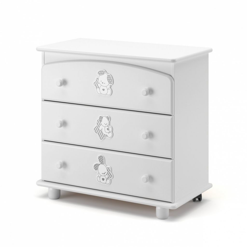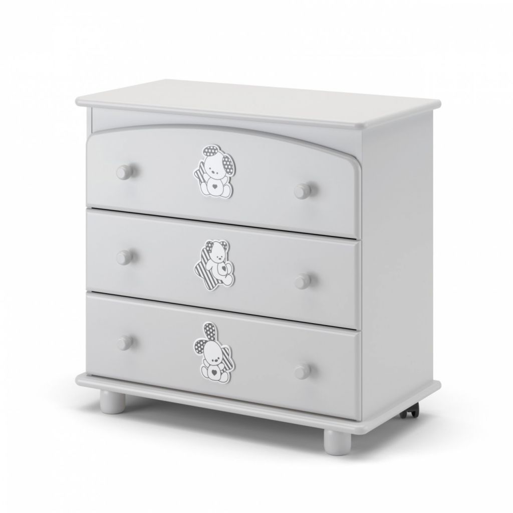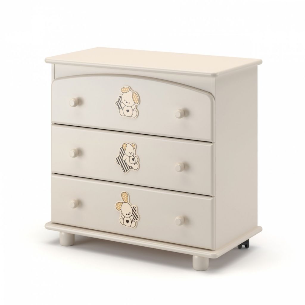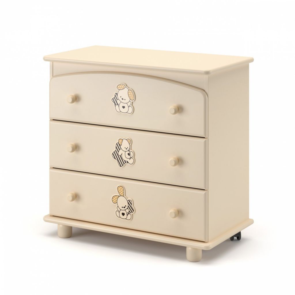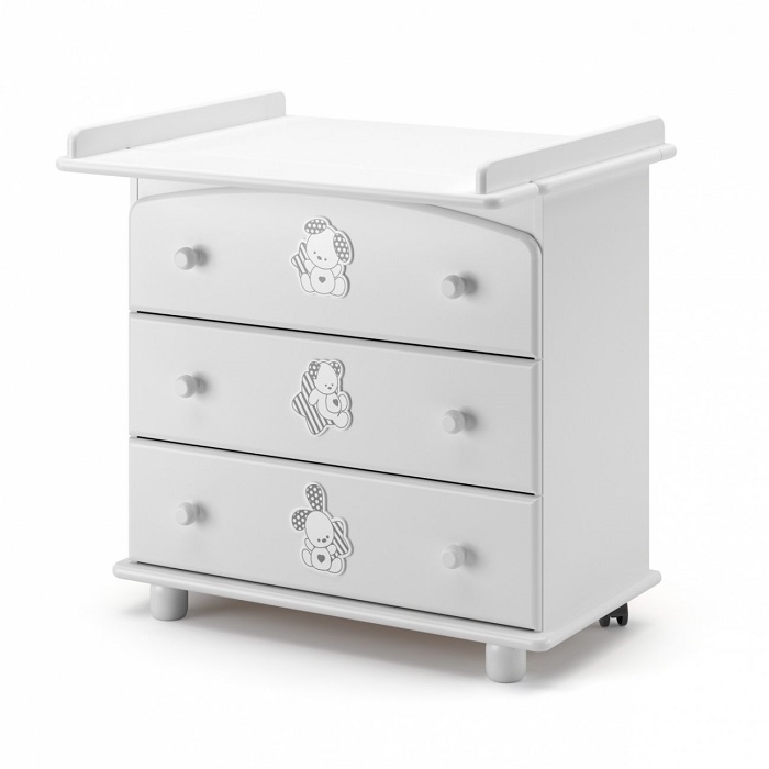 3 вместительных ящика полностью выдвигаются, помогая маме разместить все вещи для ребенка. Комод устойчивый за счет передних ножек.