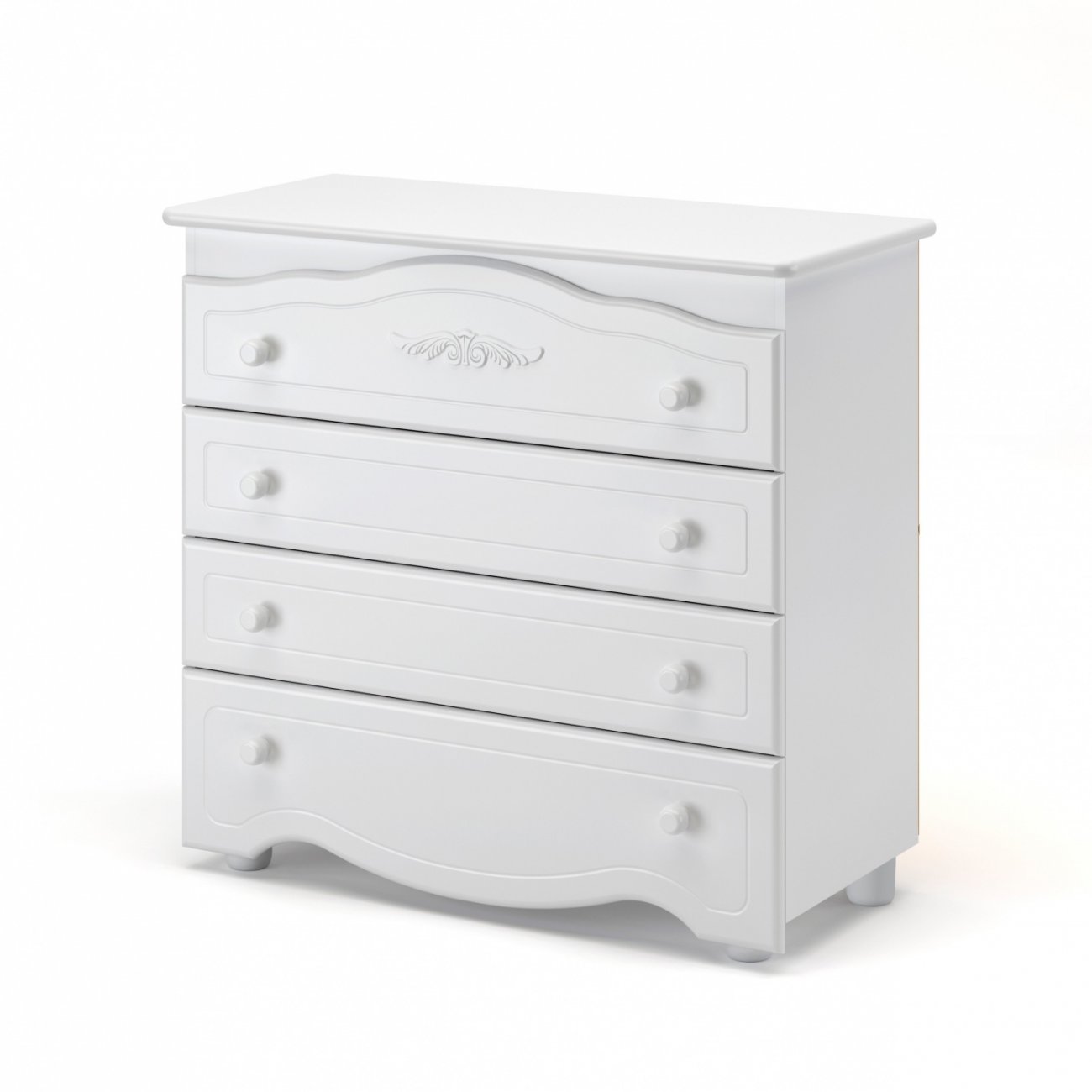 В конструкции комода предусмотрены четыре выдвижных ящика. Ящики открываются очень легко и для безопасности оснащены ограничителями хода, исключающими случайное извлечение ящика из направляющих.
