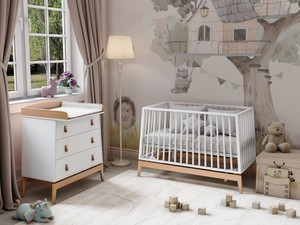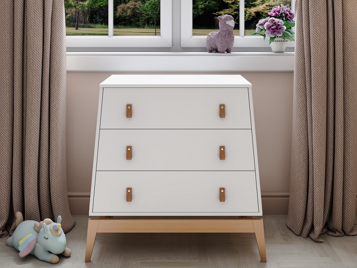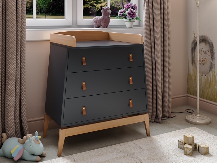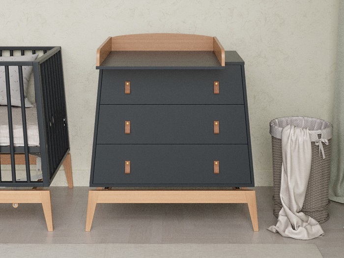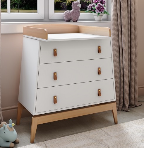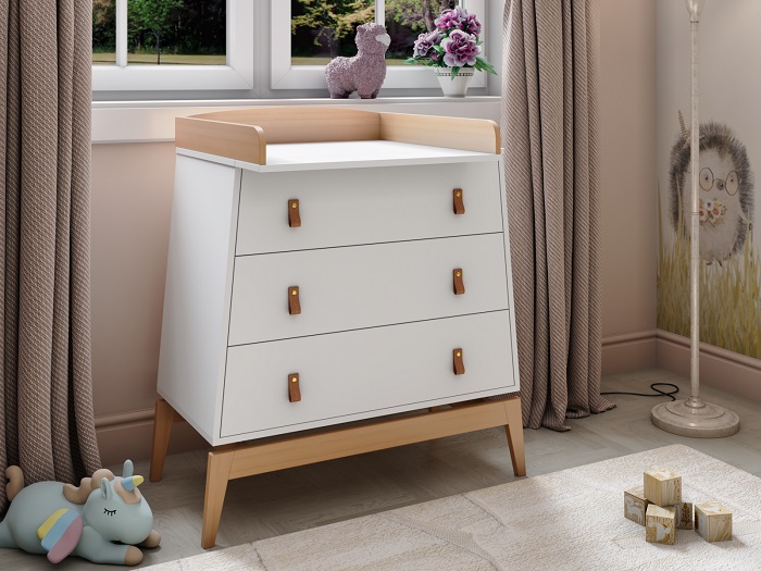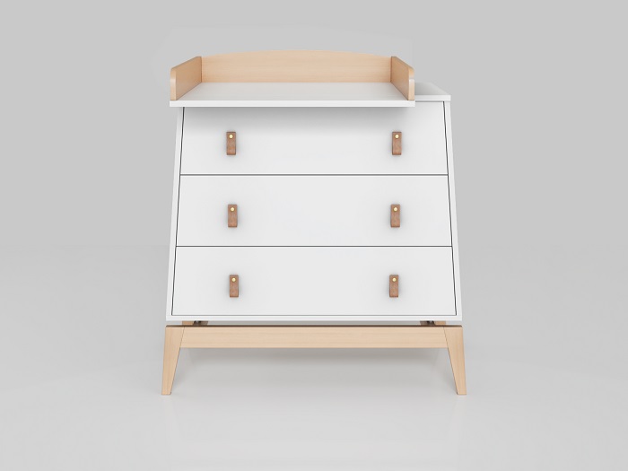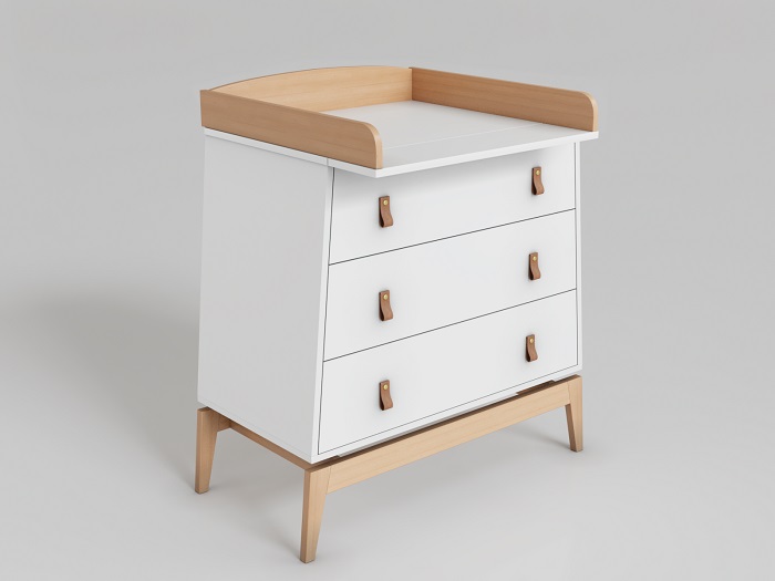 Комод Луна также предлагает функциональность, заботясь о будущих мамах и их новорожденных малышах. Съемный бортик превращает комод в практичный пеленальный столик, позволяя ухаживать за малышом на удобной высоте без нагрузки на спину.