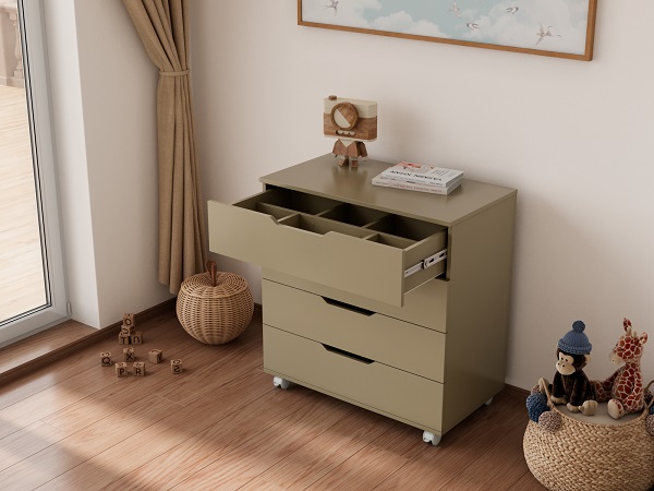 Колеса на комоде позволят передвигать комод по комнате, облегчая уборку и перестановку при необходимости.
