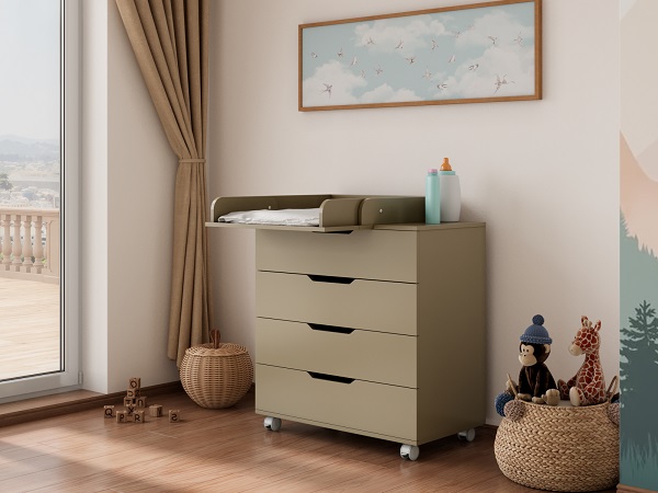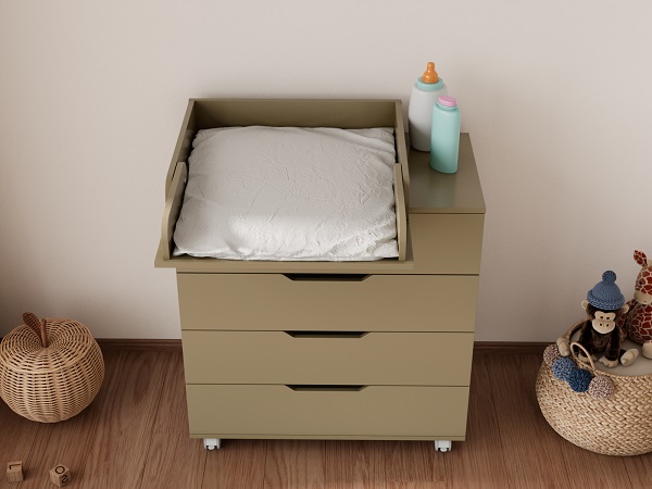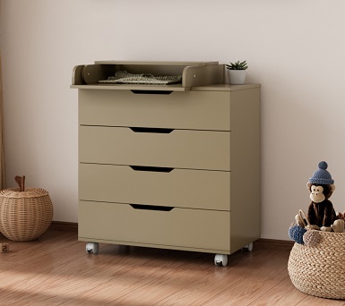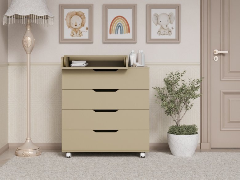 Детский комод LUNNA ЮГ 800/4 оснащен пеленальной доской, которая быстро превращает комод в пеленальный, образуя безопасную и удобную поверхность для ребенка. Вам будет удобно переодевать ребенка, проводить гимнастику и массаж, пеленать или проводить другие гигиенические процедуры для малыша. По мере роста ребенка пеленальная доска снимается, без следов на поверхности комода.