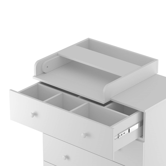 - Верхний комод оснащен органайзером для удобства хранения мелочей и детской косметики.